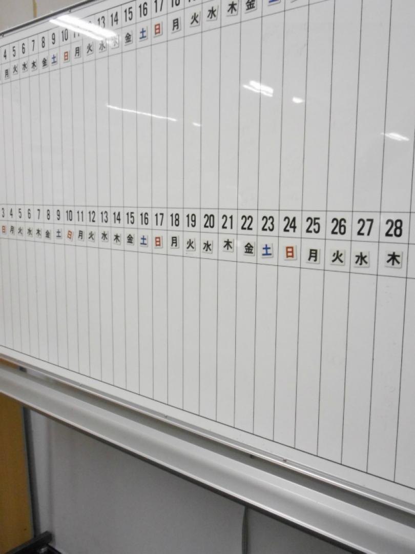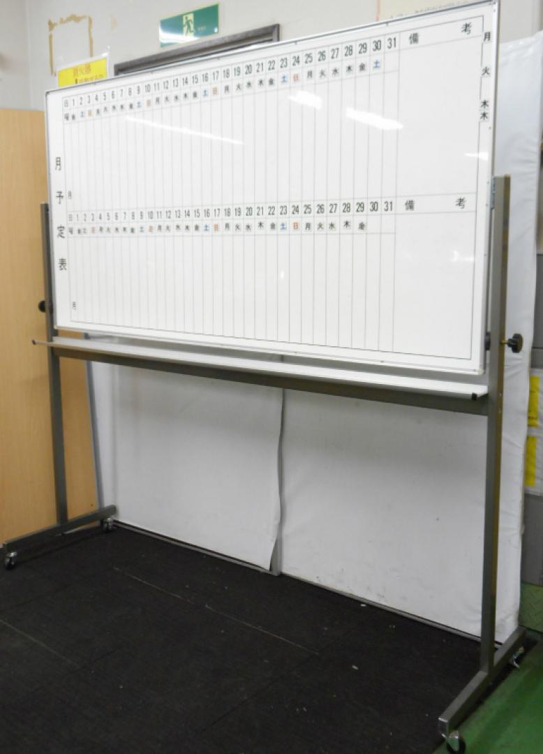 【状態良好】脚付き両面ホワイトボード 片面ホーローホワイト 片面月予定表 曜日マグネット付き 盤面サイズ1800*900【中古オフィス家具】- 川崎店