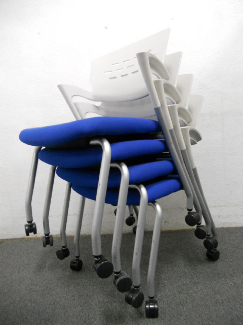 ■スタッキングチェア(キャスター付) ■ブルー ■イナバ(Inaba International) ■ミーティングチェア- 在庫数