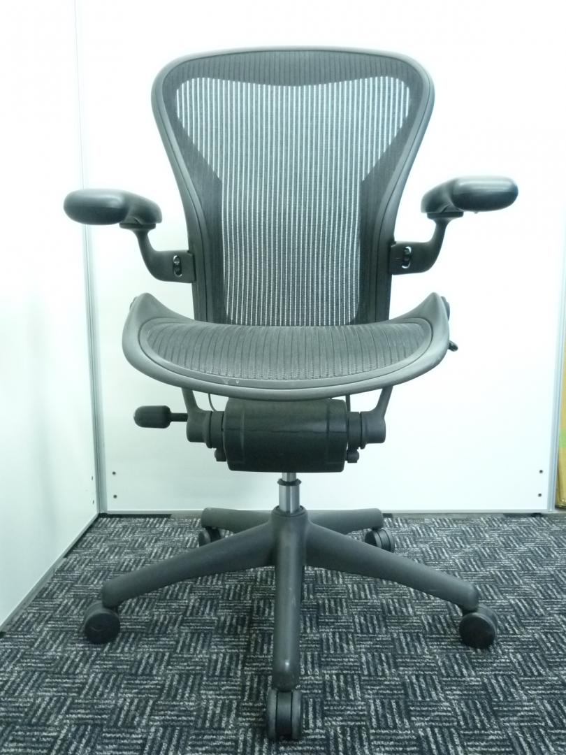 【★状態イマイチのためお安く!】■ハーマンミラー製 アーロンチェア Bサイズ 固定肘 ※キズあり・ランバーサポート無・昇降ガス圧弱めのためお安く!【訳あり特価品】