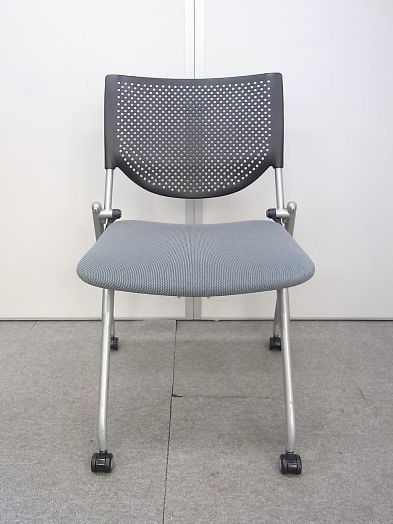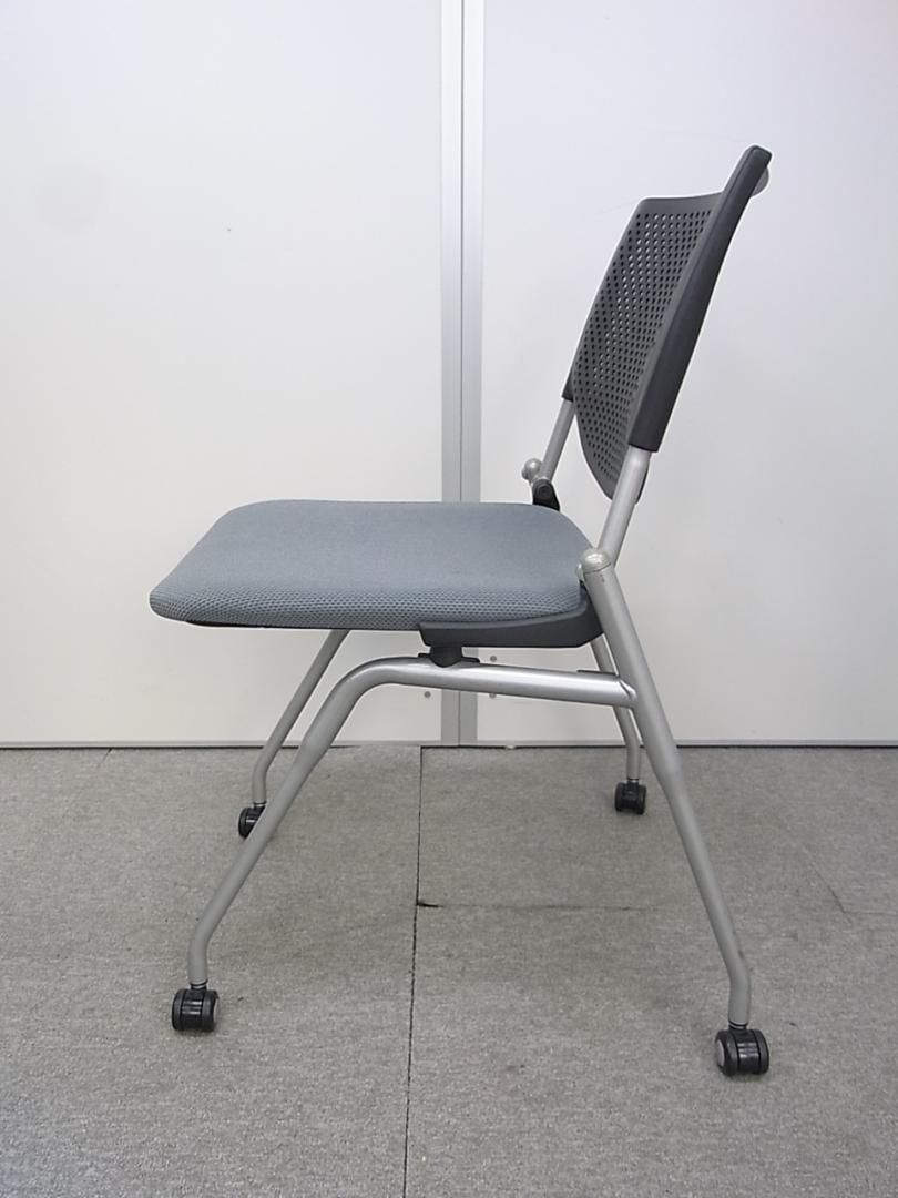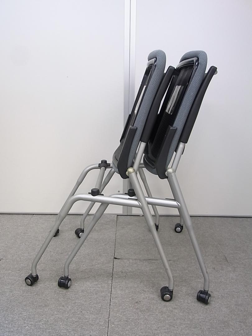 スペース空間を最大限に生かせる座面が跳ね上げ可能なネスティングチェア! ■オカムラ/プロスタック/グレー