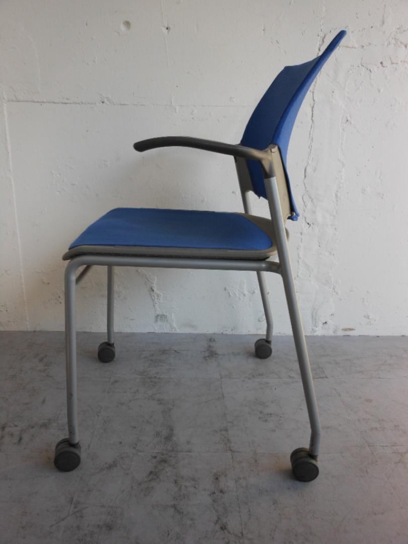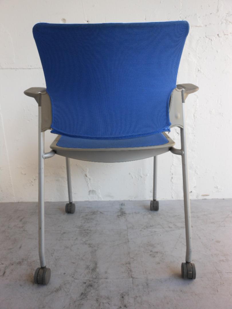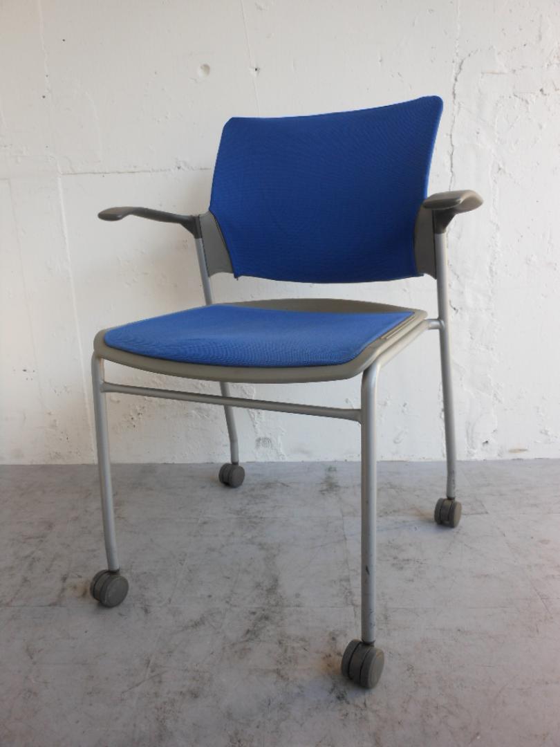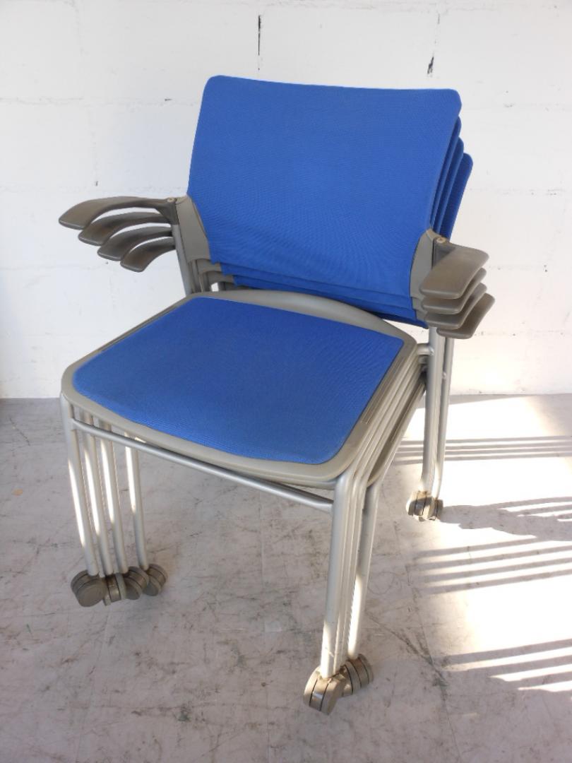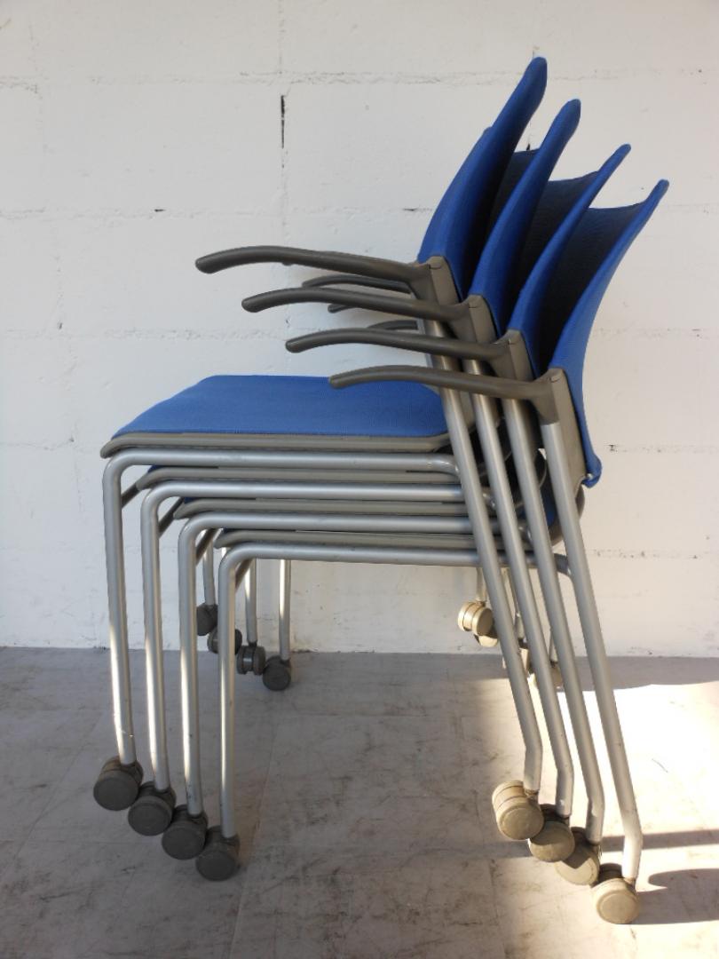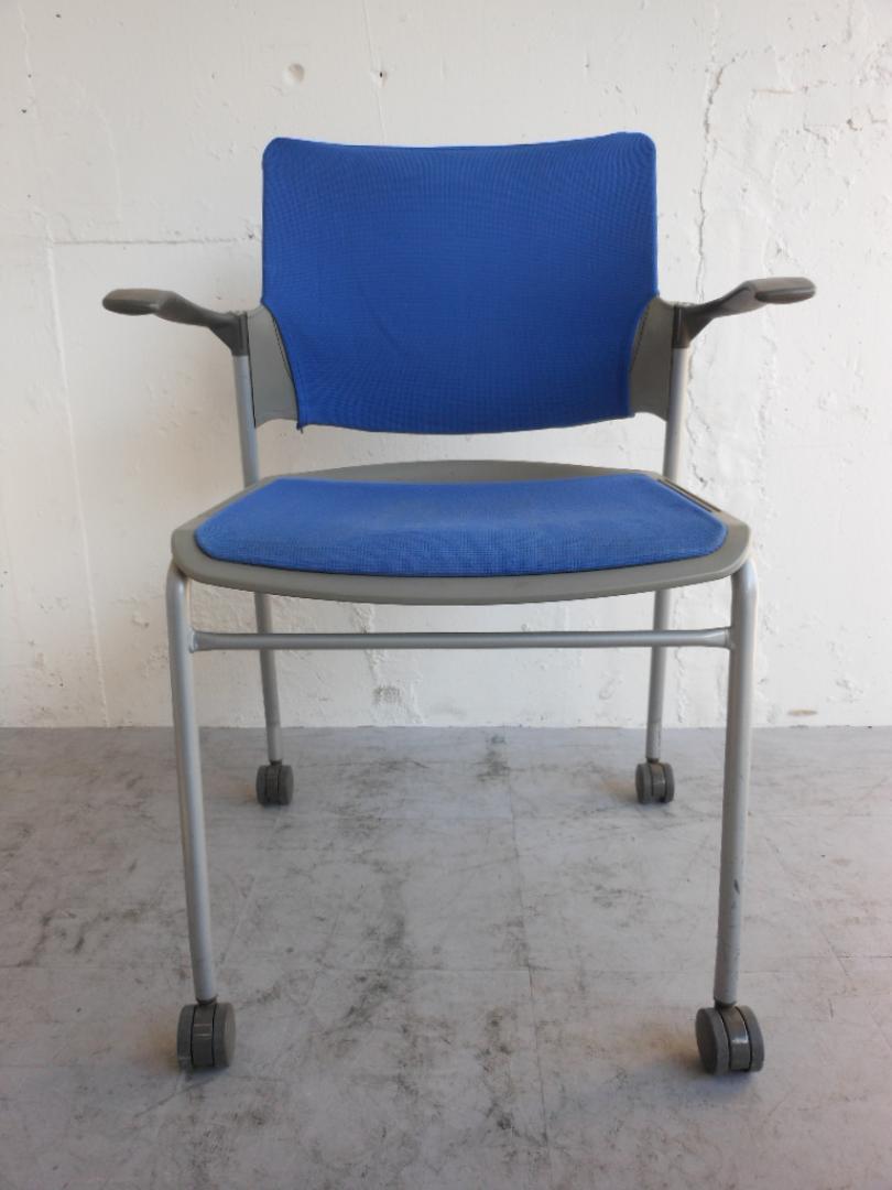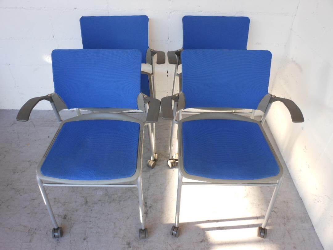4脚セット 肘付スタッキングチェア キャスター付 ブルー【セット商品】- 神戸・三宮店