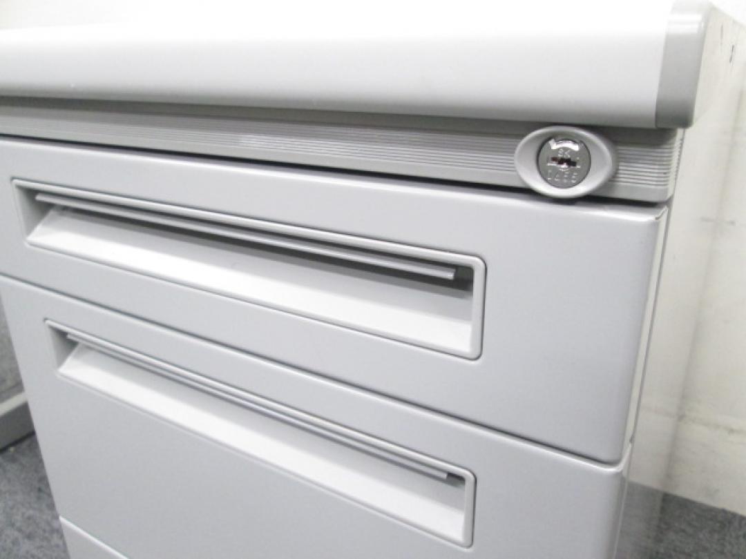- シンプルながらも使いやすい工夫があります。ロックは、一度の施錠ですべての引出しの鍵がかかるオールロック機構。