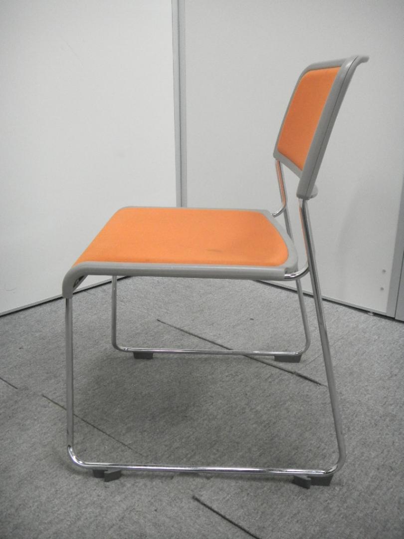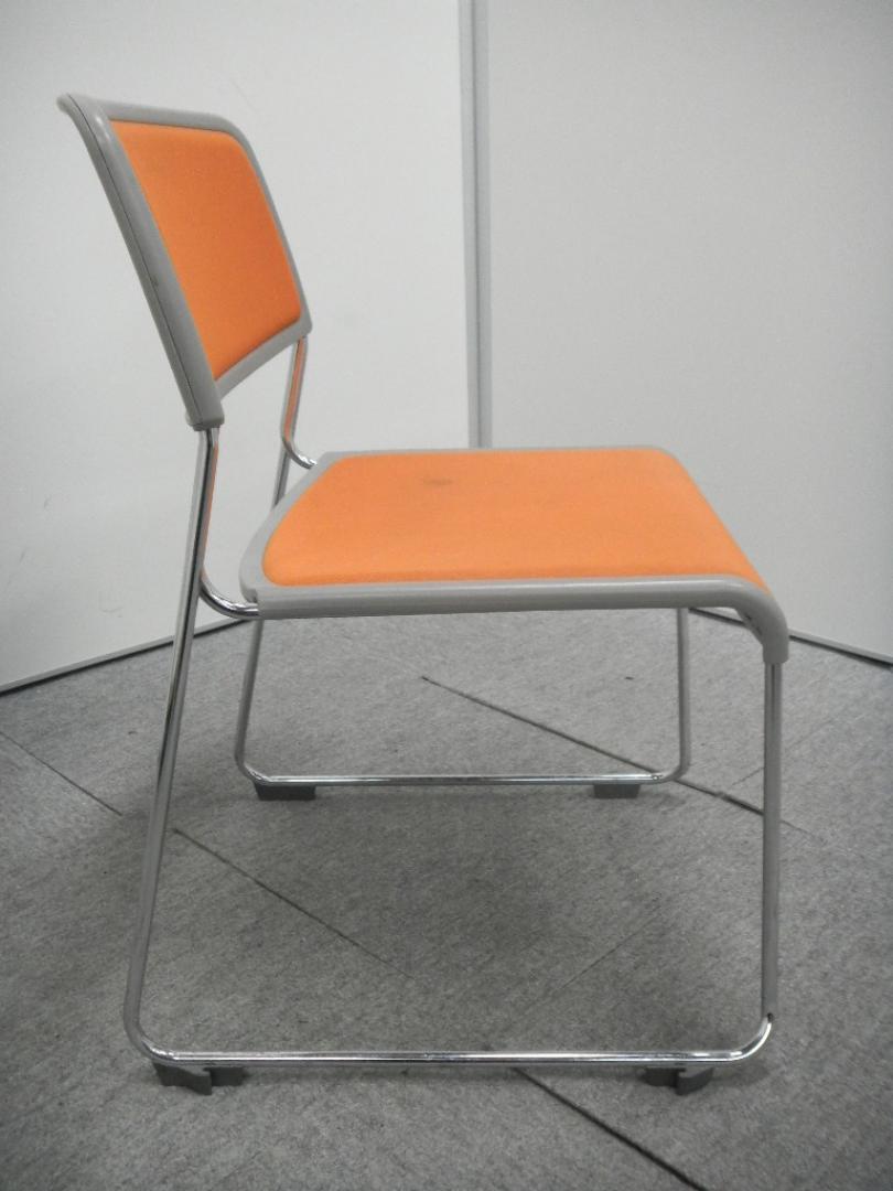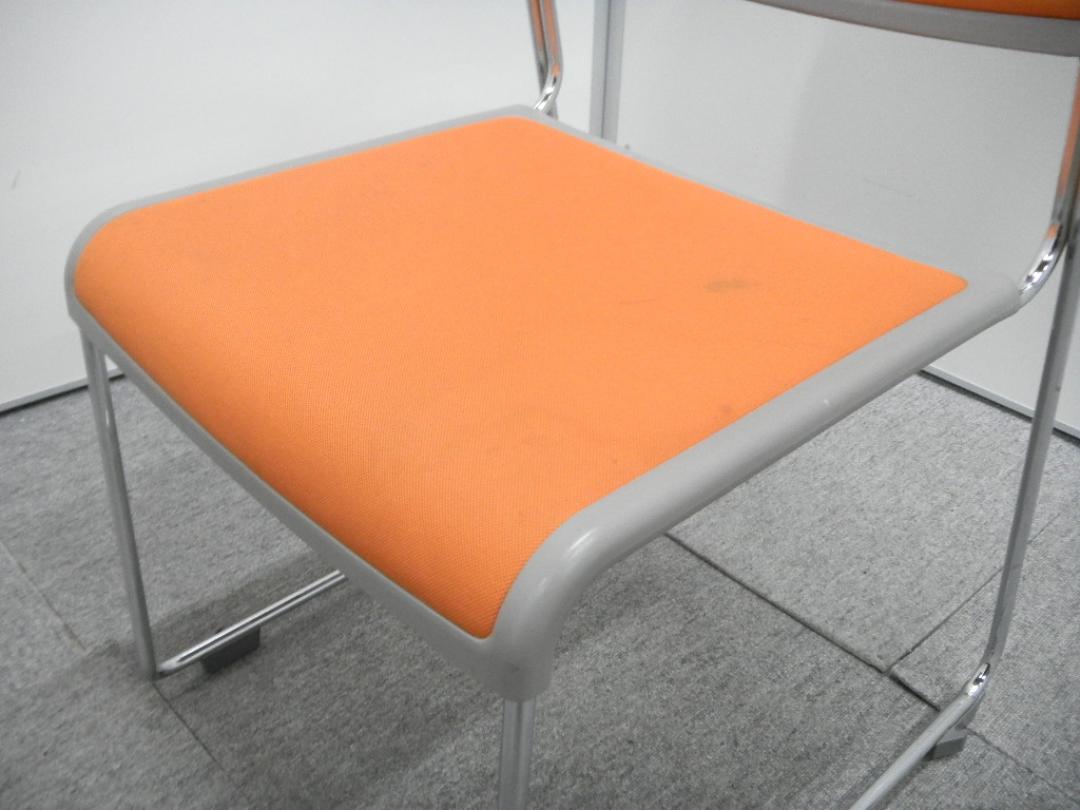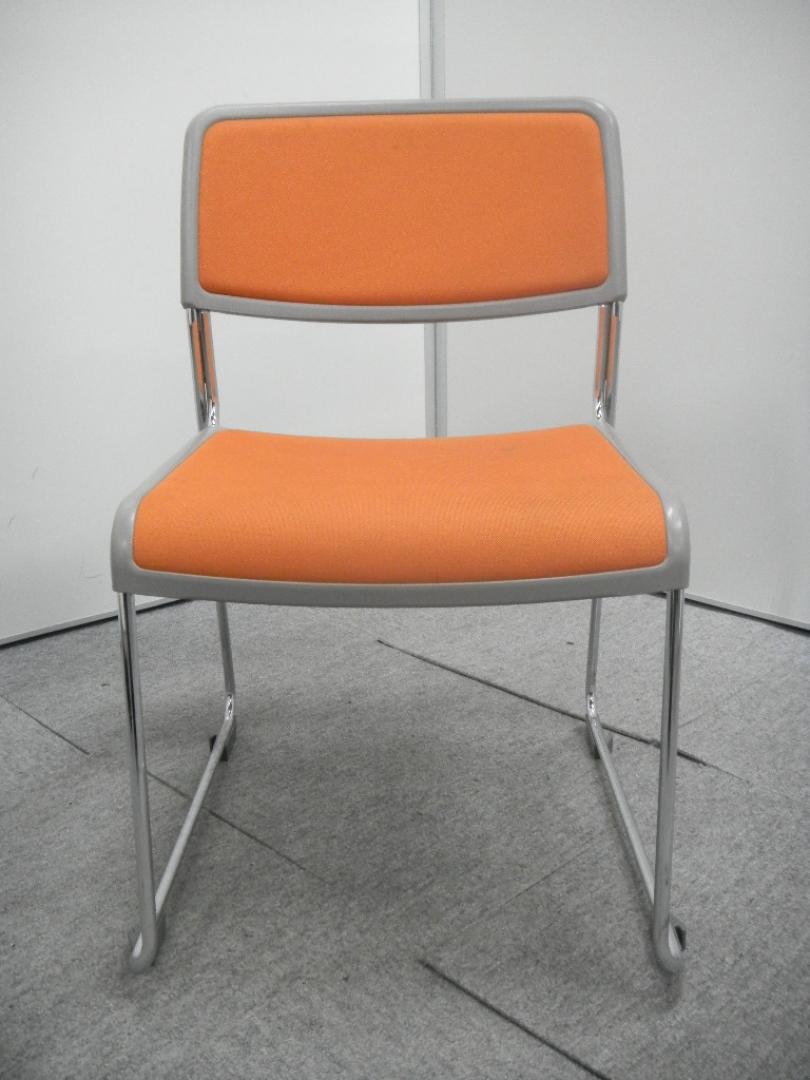 【7台入荷】縦に重なるスタッキングチェア きれいなオレンジ色- 在庫数