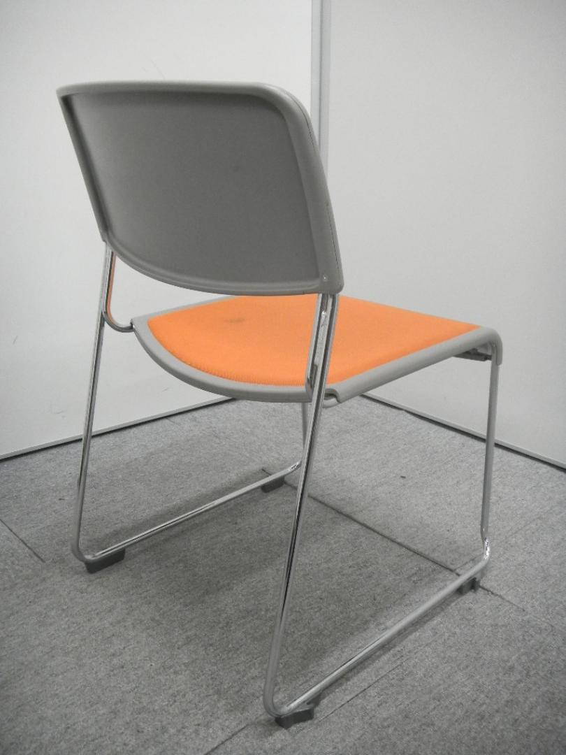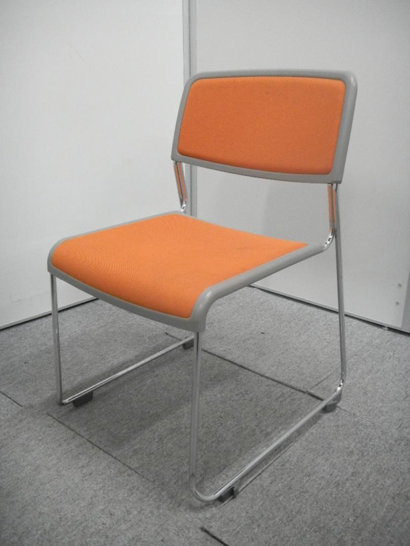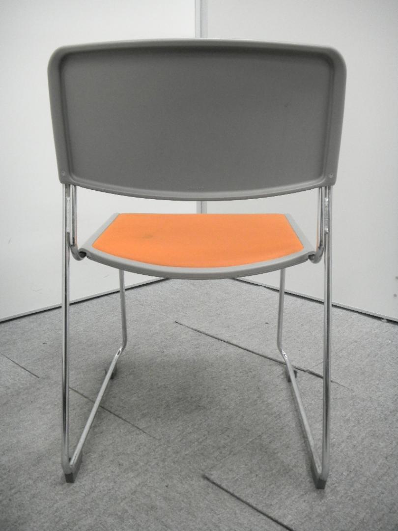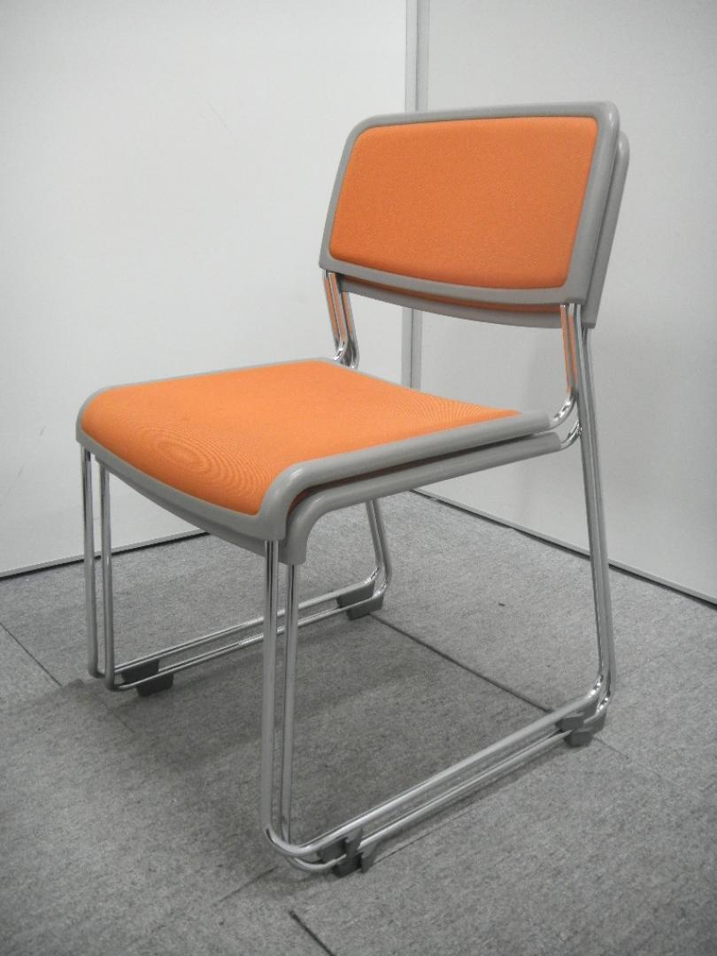 【7台入荷】縦に重なるスタッキングチェア きれいなオレンジ色- 在庫数