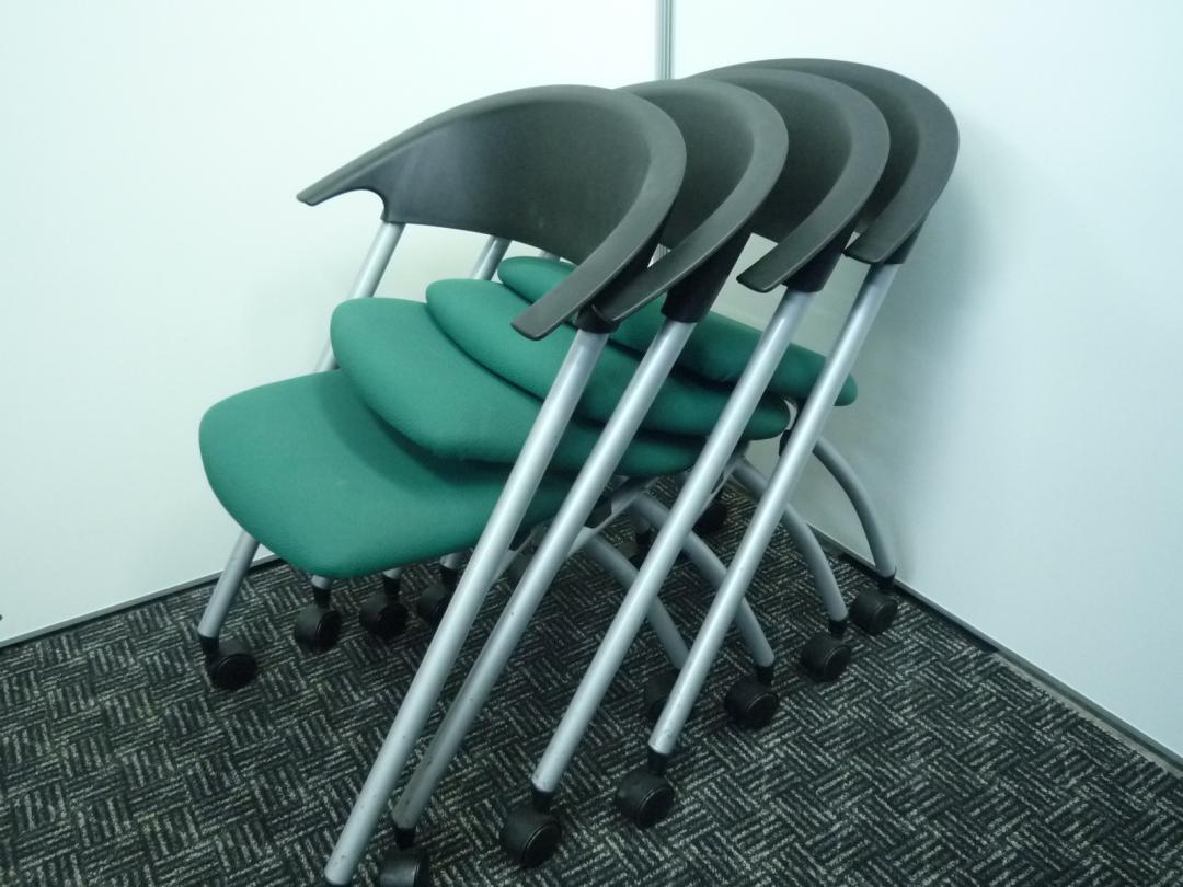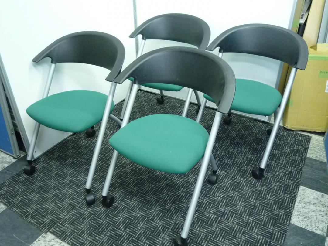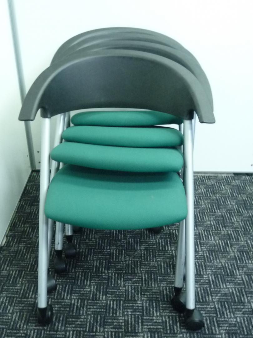 【4脚セットでお得!】シンプルかつ便利!なネスティングチェア■緑×黒■ルイージ・ヨッシーファン必見!■グッドデザイン賞受賞【セット商品】- 埼玉本店