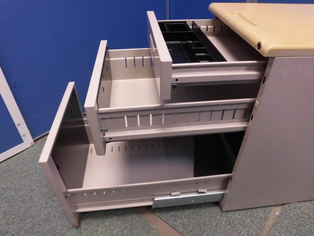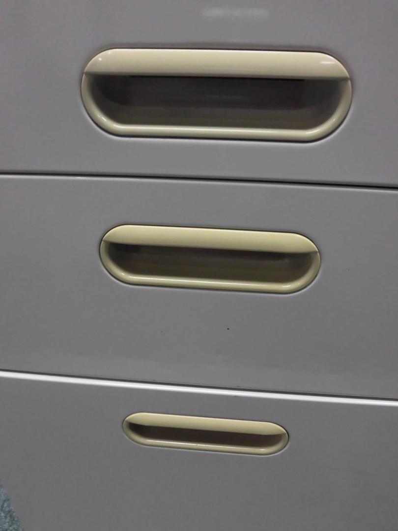 - 多数不具合ありその脇机・ワゴンの本来の効用を果たすための機能以外の多数が使用不可な状態。(例、引出が開閉しづらい、 キャスターロック機能使用不可、ラッチ不良 等がある。)