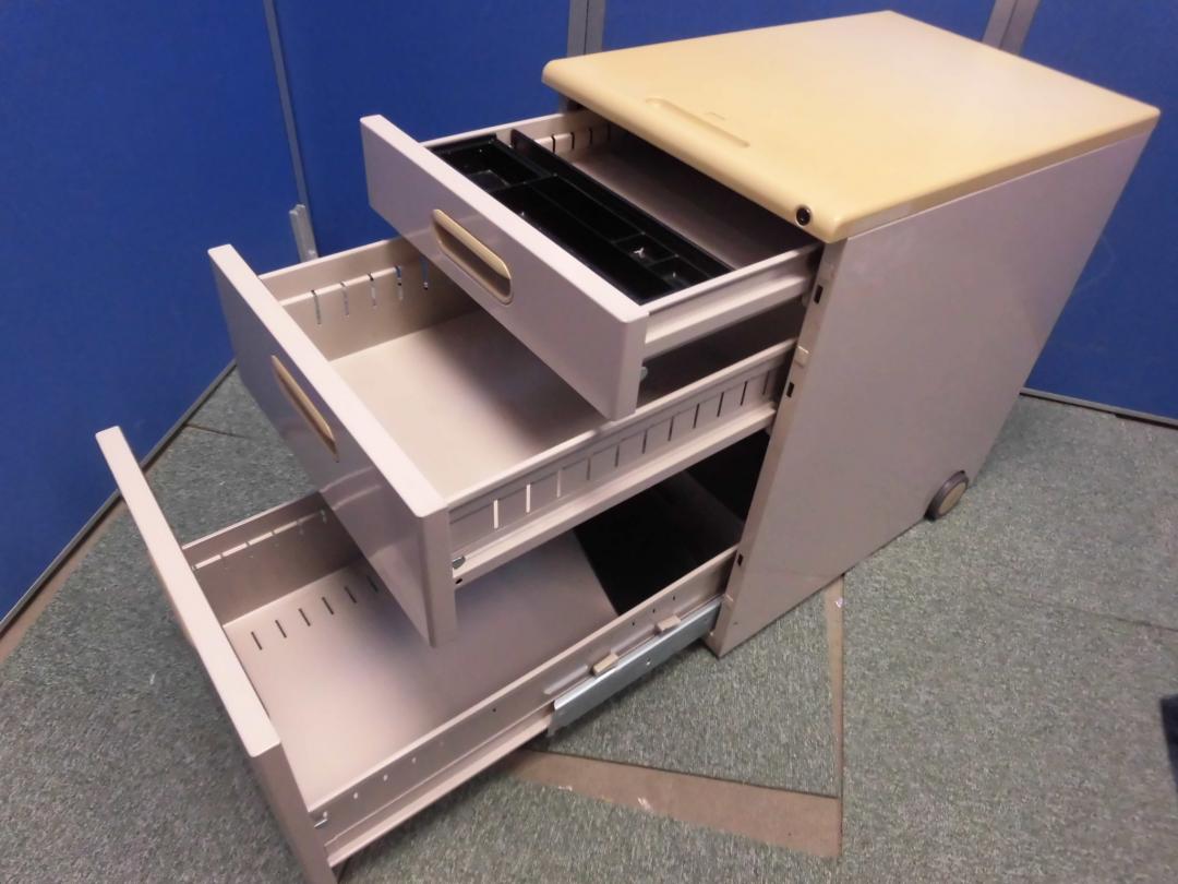 - 一部不具合ありその脇机・ワゴンの本来の効用を果たすための機能以外の一部が使用不可な状態。(例、引出が開閉しづらい、 キャスターロック機能使用不可、ラッチ不良 等がある。)