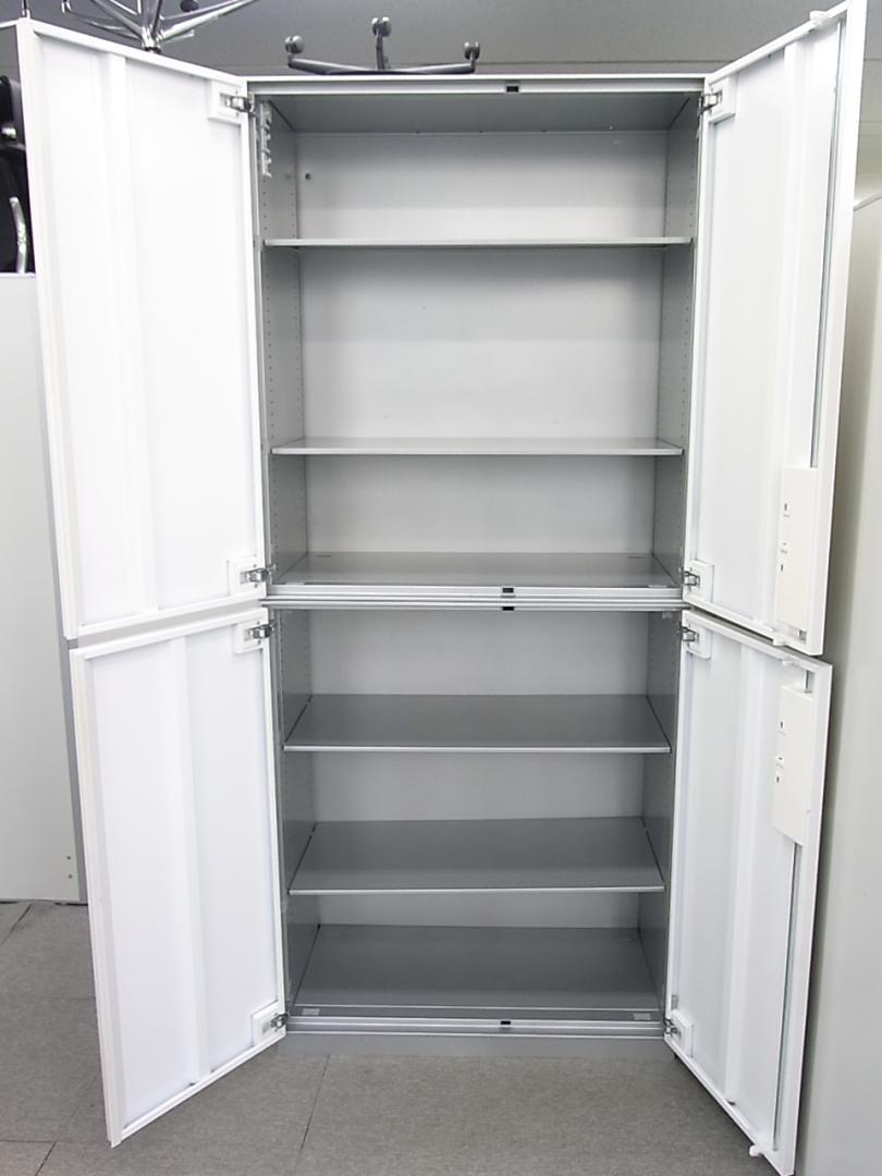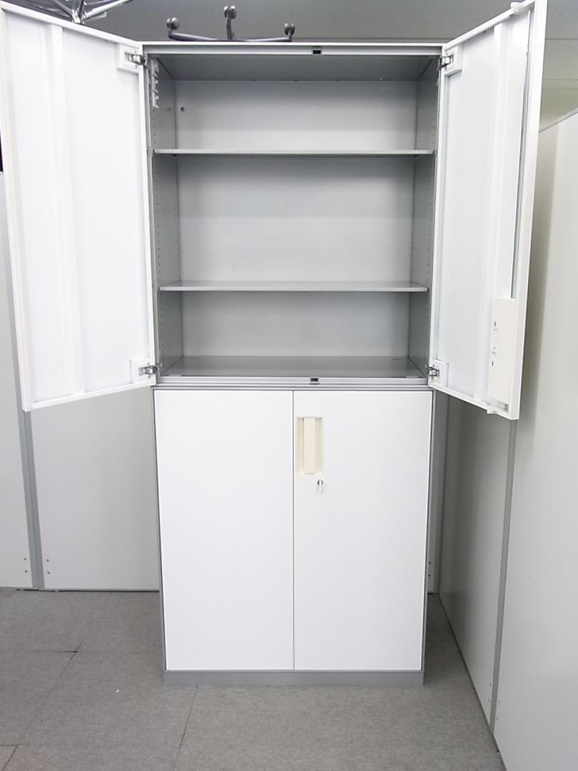 【ホワイト書庫】人気の両開き×両開き コクヨ製UFXシリーズ【上下ともに鍵付き!!】- 在庫数