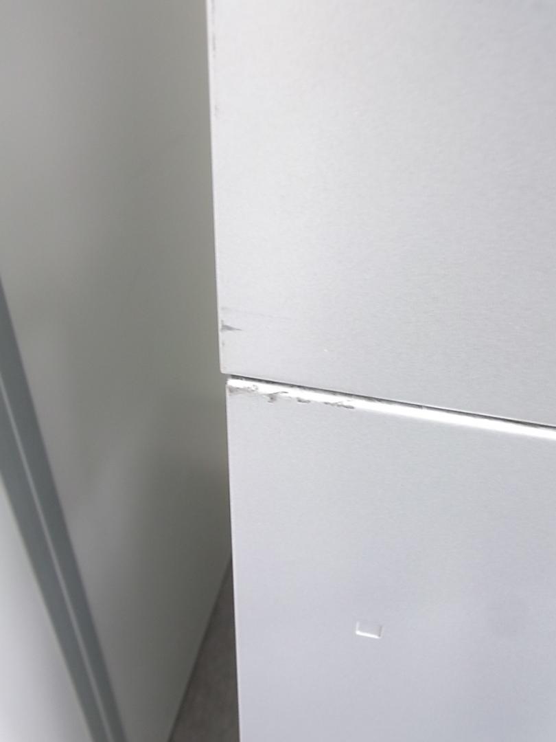 - 多数不具合あり引出の開閉不可、施錠不可、棚板無しといったその書庫の本来の効用を果たすための機能以外の多数が使用不可(例、扉、引出の開閉がしづらいなどがある。 )