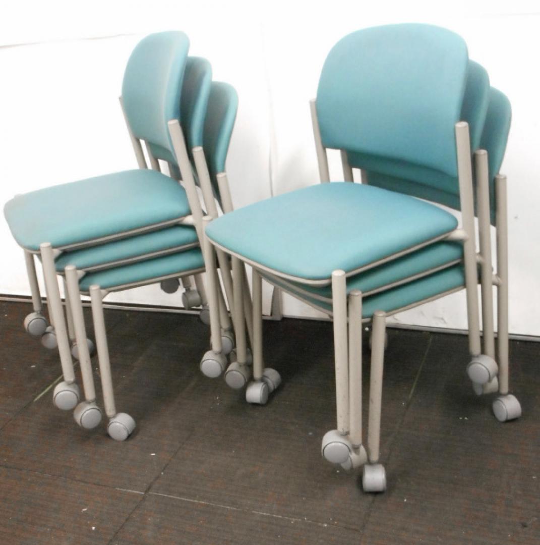 【セット商品】岡村製作所製 キャスター付きスタッキングチェア6脚セット ミーティングチェア 会議用チェア【中古オフィスチェア】- 川崎店