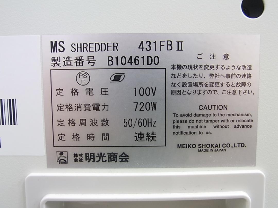 【中古】 MS-ID431SEFII 明光商会 シュレッダー 123299