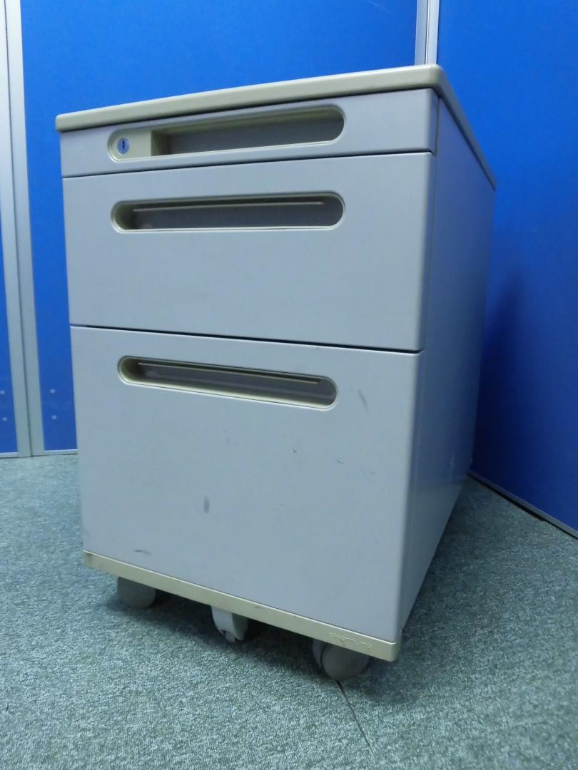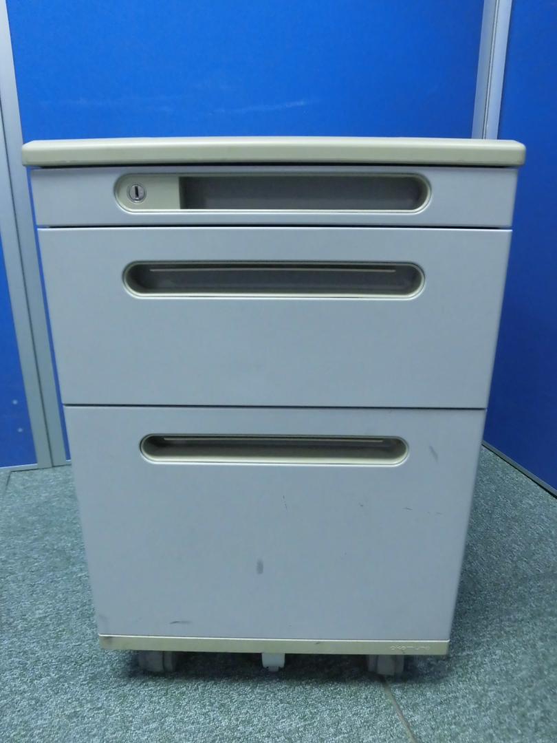 3段ワゴン|キャスター付|オカムラ製|デスク下収納可能|- 京都東寺店