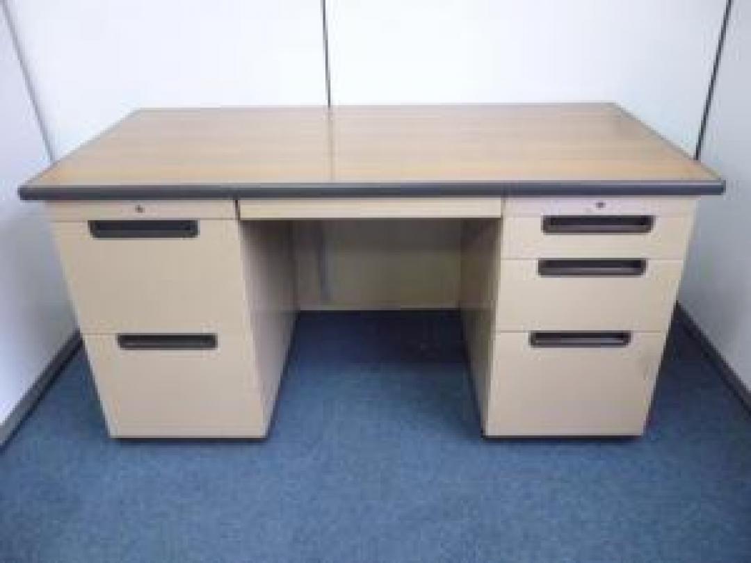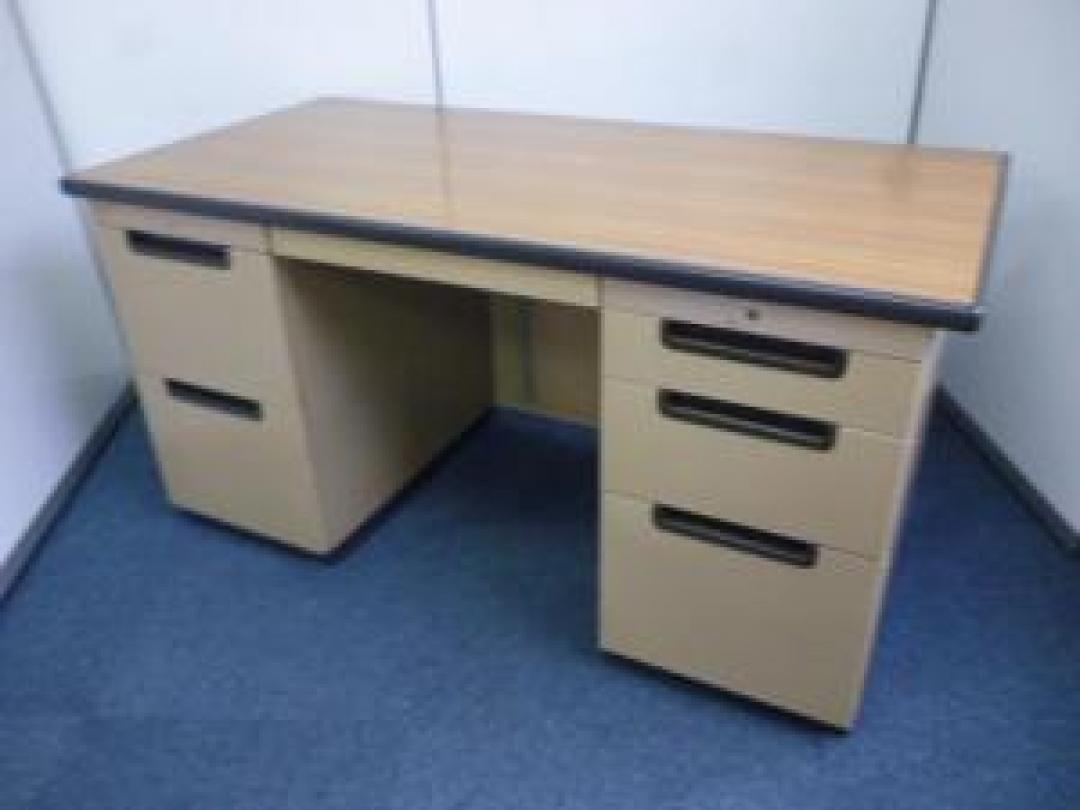 【オカムラ製】【両袖机】【横幅1400mm】【ブラウン】- 仙台店