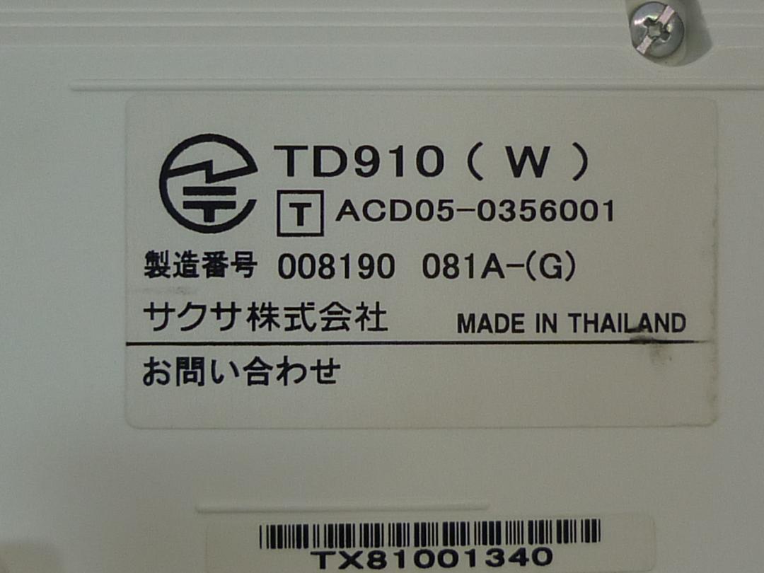 | 付属品 | ・TD910(W)対応 新品カールコード<BR>・TD910(W)対応 示名条<BR>・TD910(W))対応 取扱説明書 |