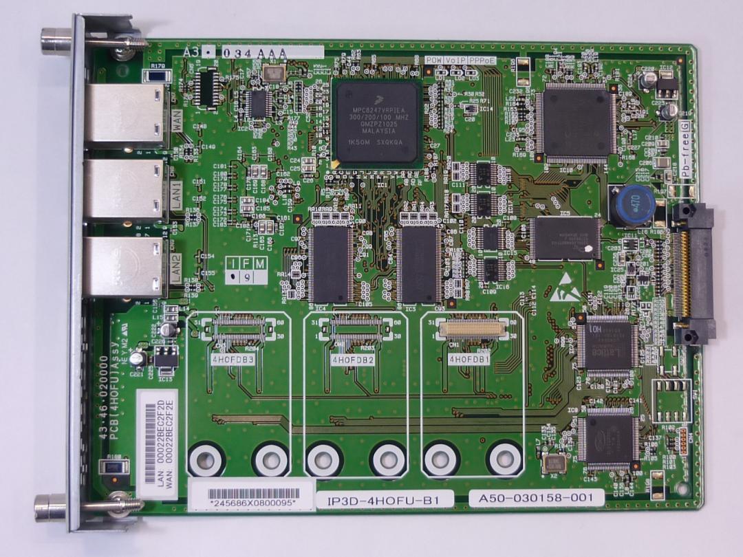 | 用途 | ・ひかり電話オフィストランクを4ch収容可能。 ・IP3D-4HOFDB-A1を1枚実装で最大8ch収容可能。 |