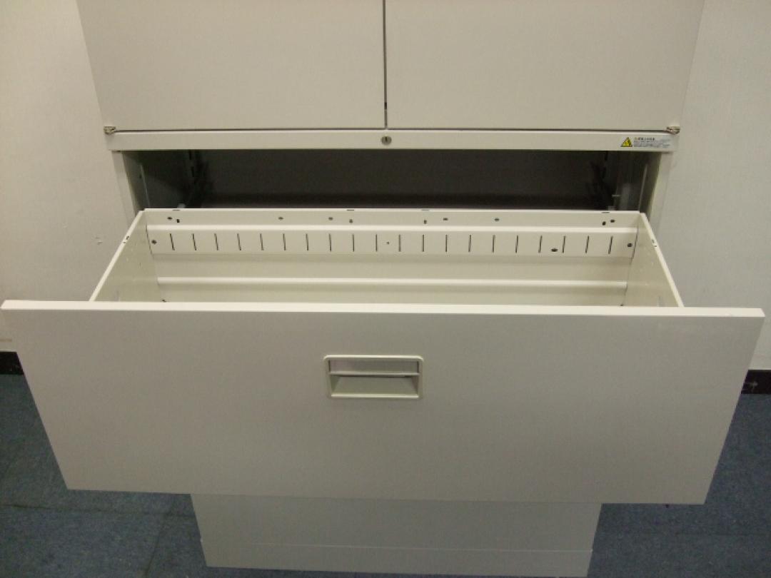 - 多数不具合あり引出の開閉不可、施錠不可、棚板無しといったその書庫の本来の効用を果たすための機能以外の多数が使用不可(例、扉、引出の開閉がしづらいなどがある。 )