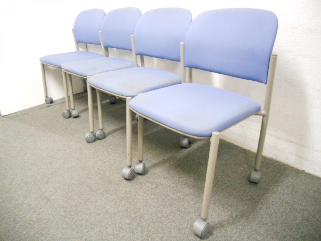 ■スタッキングチェア ■キャスター付 ■ブルー ■オカムラ(okamura)- 在庫数