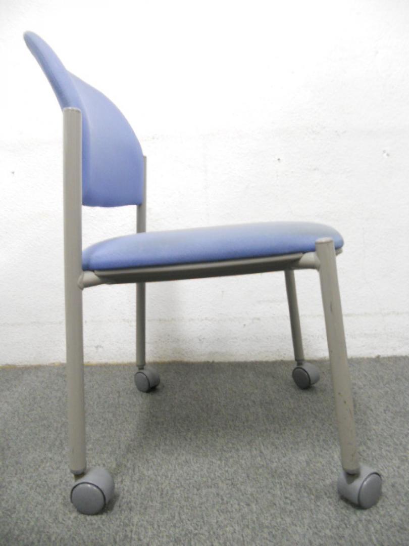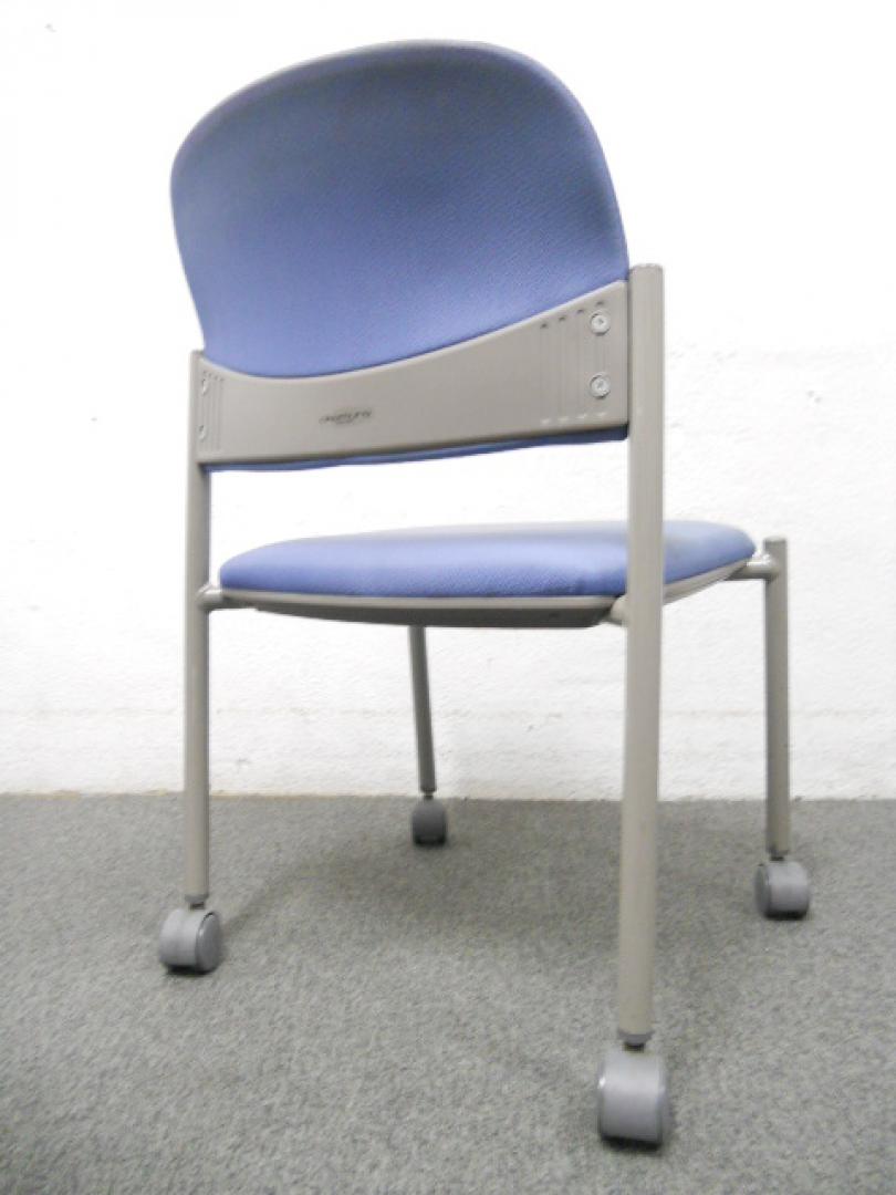 ■スタッキングチェア4脚セット ■キャスター付 ■ブルー ■オカムラ(okamura)【OB新宿店 特価商品!】- 在庫数