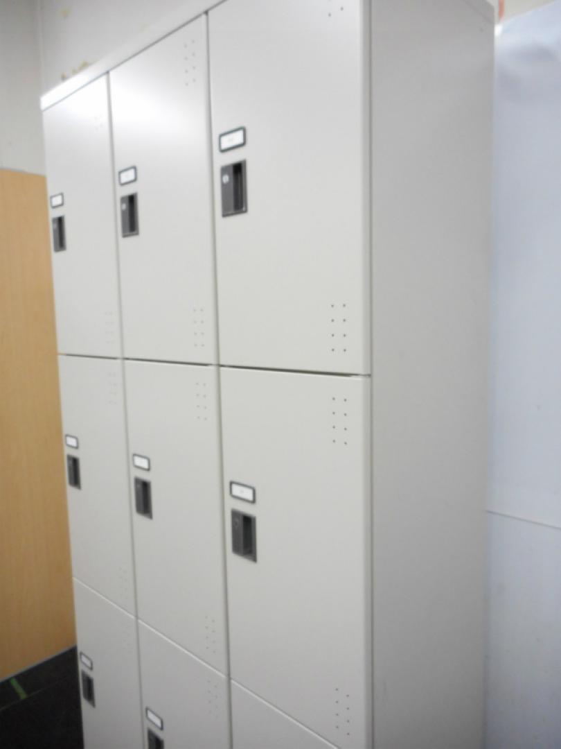 【1台入荷!扉に一か所打痕あり】9人用ロッカー シリンダー錠タイプ スリムな奥行380mm 【中古オフィス家具】- 川崎店