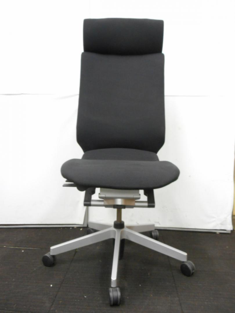 【おつとめ品】AGATA / A ハイバック ヘッドレスト付き 背ファブリック 肘無しチェア ブラック リクライニングを倒すと何かに引っかかるような異音がします【中古オフィスチェア】【高級チェア】- 川崎店