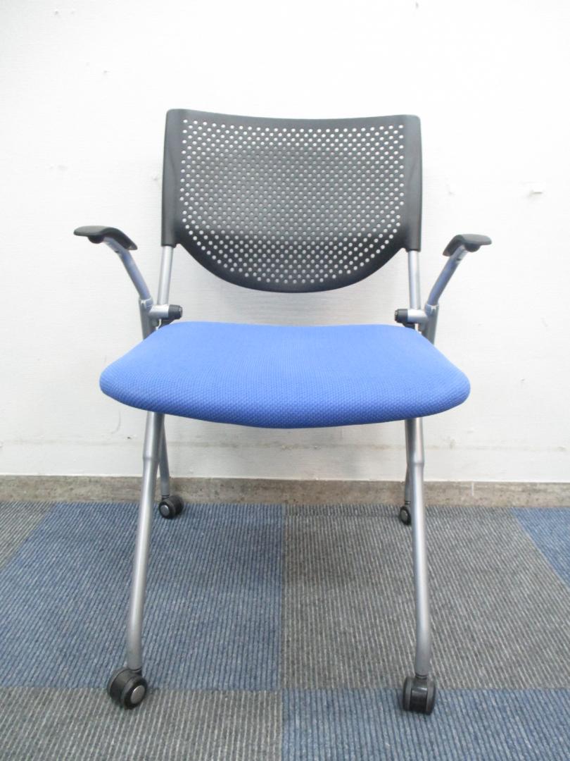 【肘付き】【プロスタックシリーズ】オカムラ製 ネスティングチェア【座面クッション】【中古 事務用会議チェア オフィス家具】- 千葉店