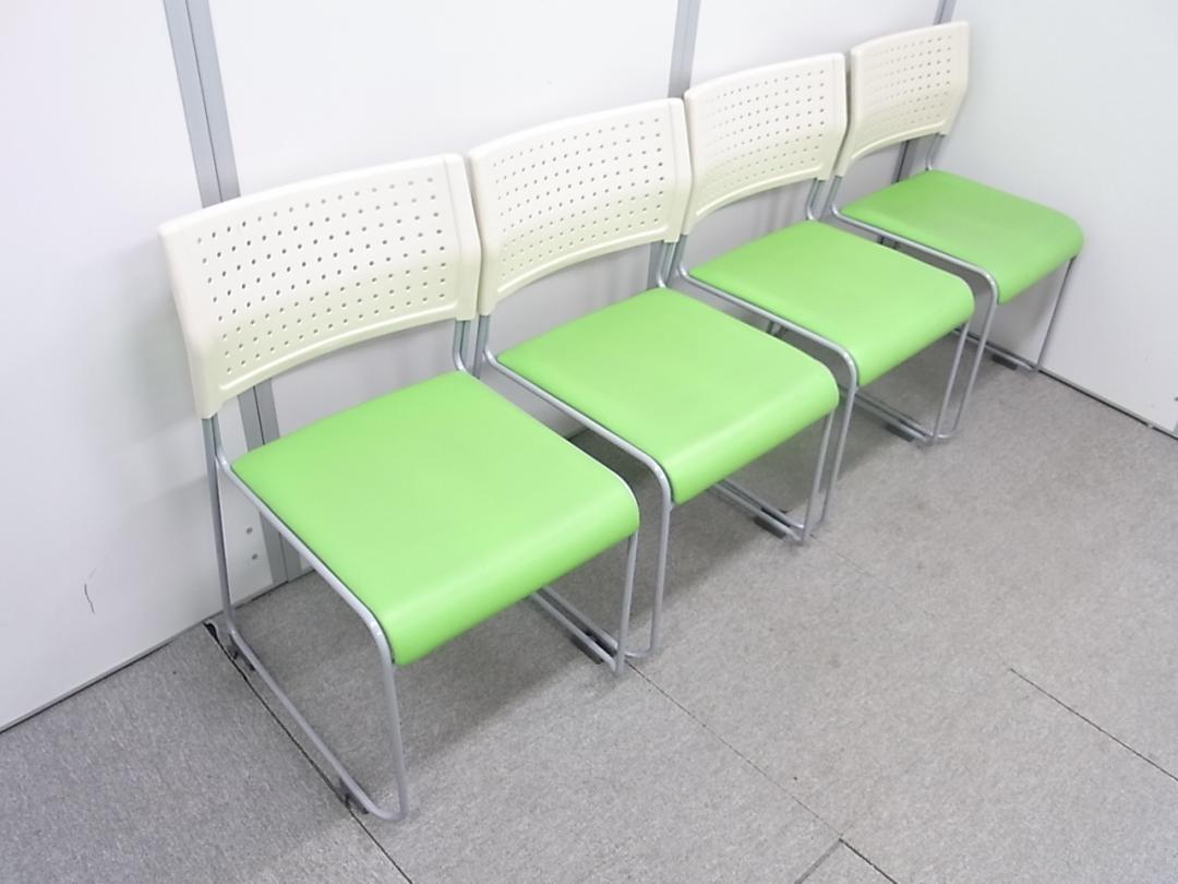 【中古】スタッキングチェア アイリスチトセ製 ミーティングチェア ライトグリーンが鮮やか- 在庫数