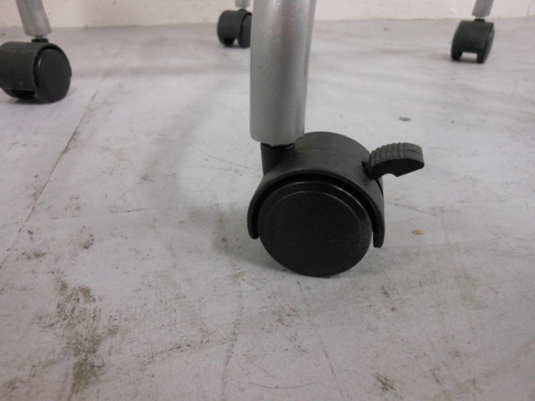 - 一部不具合あり天板歪み、アジャスター無し、キャスター使用不可ようなそのテーブルの本来の効用を果たすための機能以外の一部が使用不可な状態。(例、キャスターロッ ク機能使用不可、棚板無し等がある。)