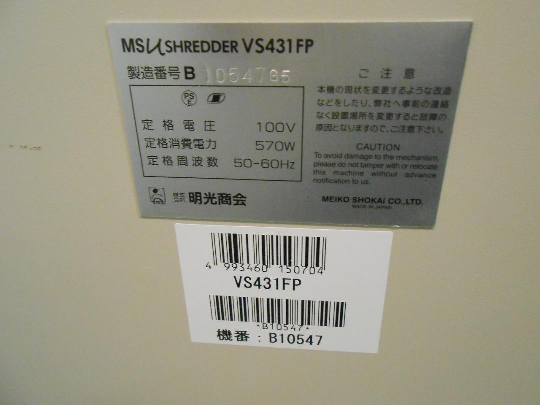 【中古】 MS-VS431FP 明光商会 シュレッダー 124278