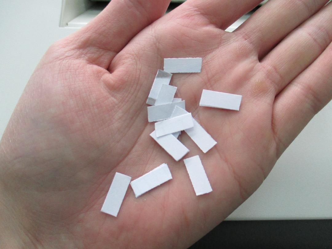 縦切り&横切りによる小さな細断面積で、機密保持を徹底。