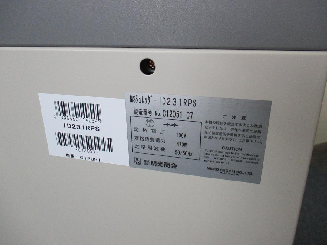 【MSシュレッダー】【A3対応】明光商会製 ID 231RPS【スパイラルカット方式】【中古 業務用シュレッダー 千葉店】■状態:中古品