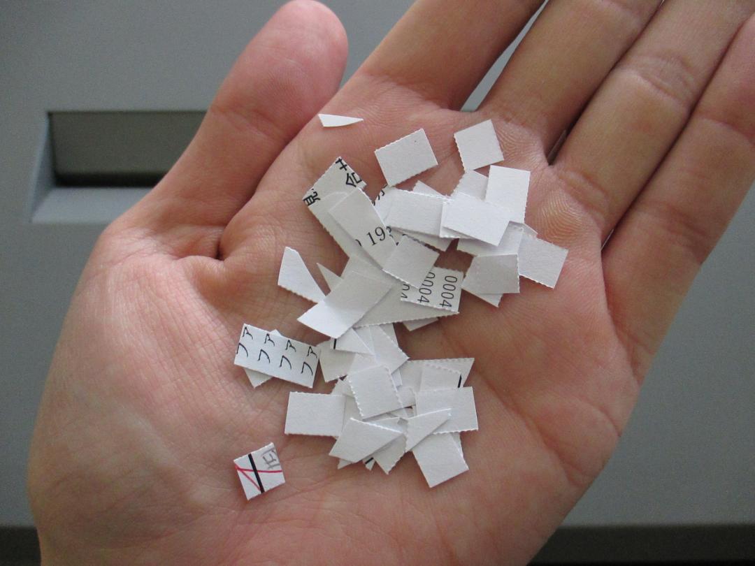縦切り&横切りによる小さな細断面積で、機密保持を徹底。