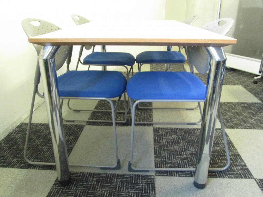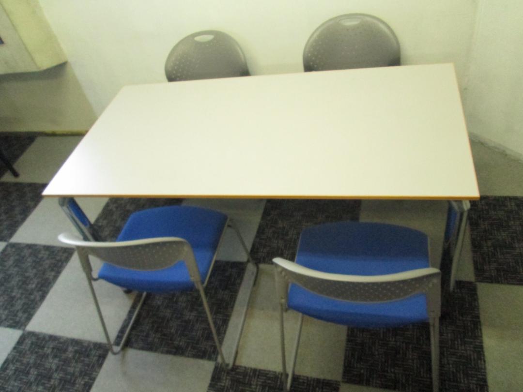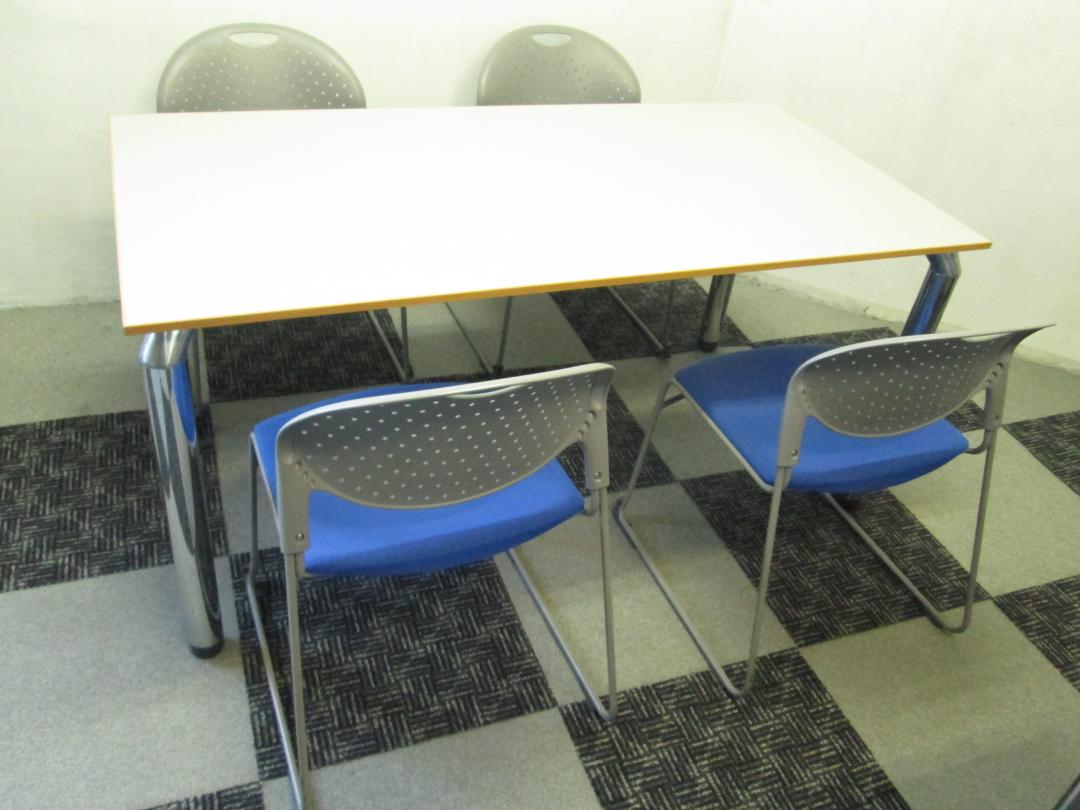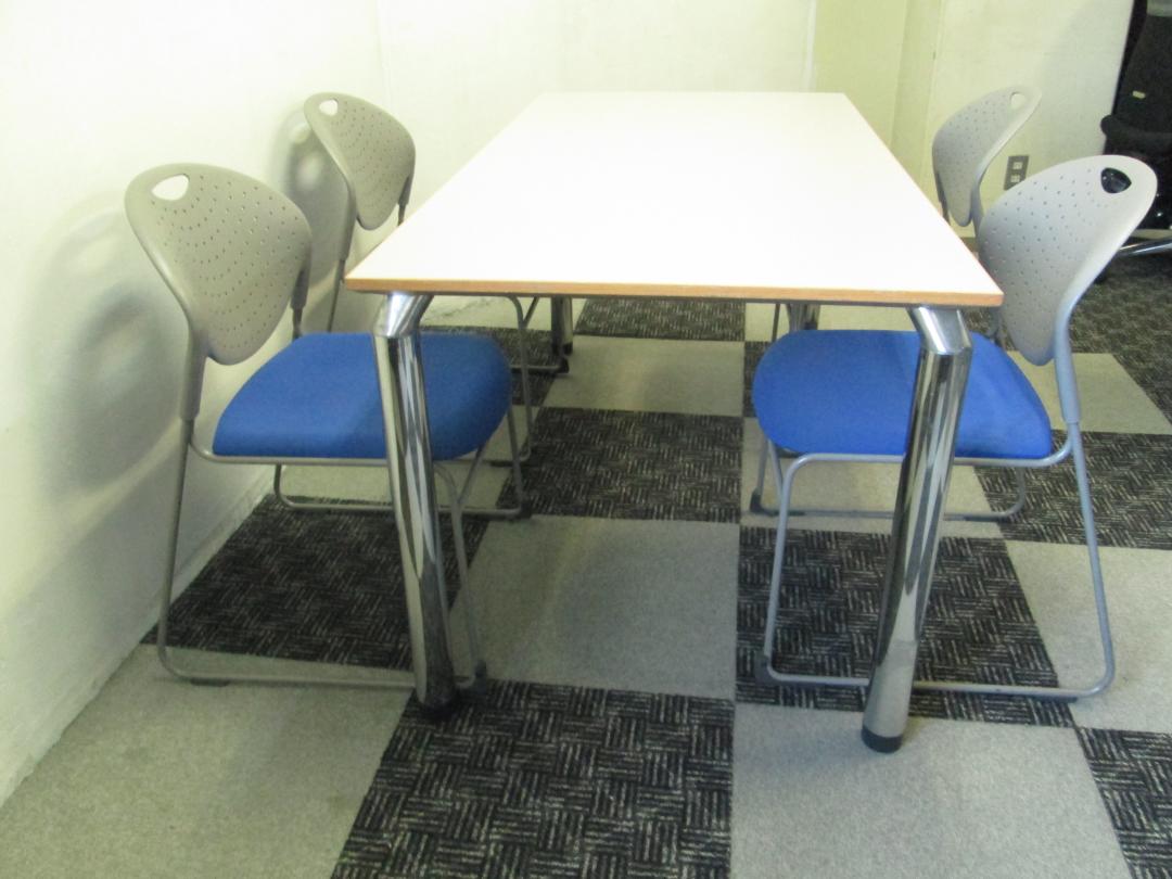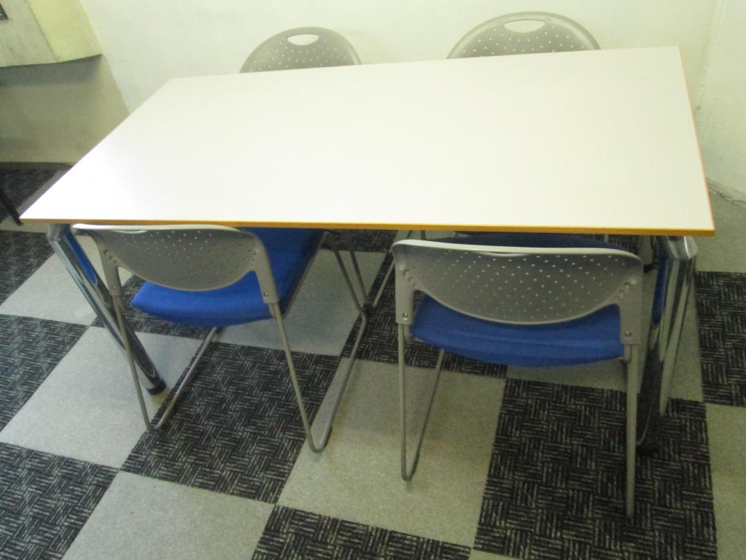 ゆったり4人掛けできるミーティングテーブルにスタッキングチェア4脚を合わせたセット商品になります