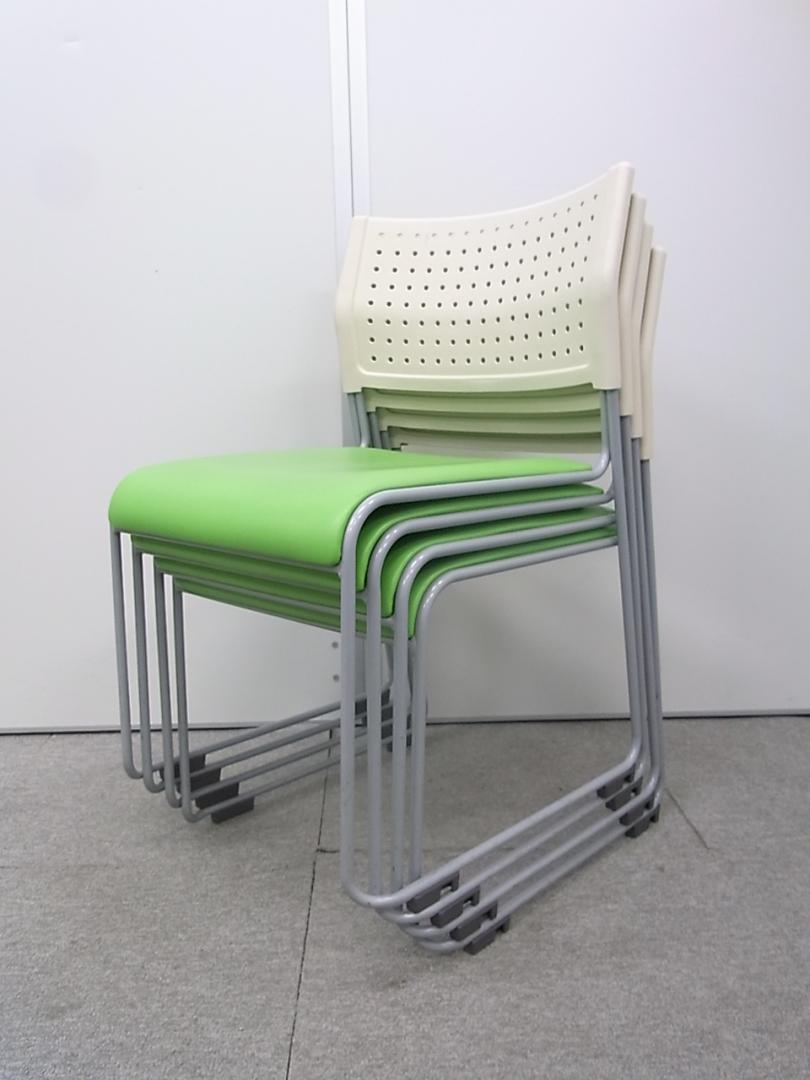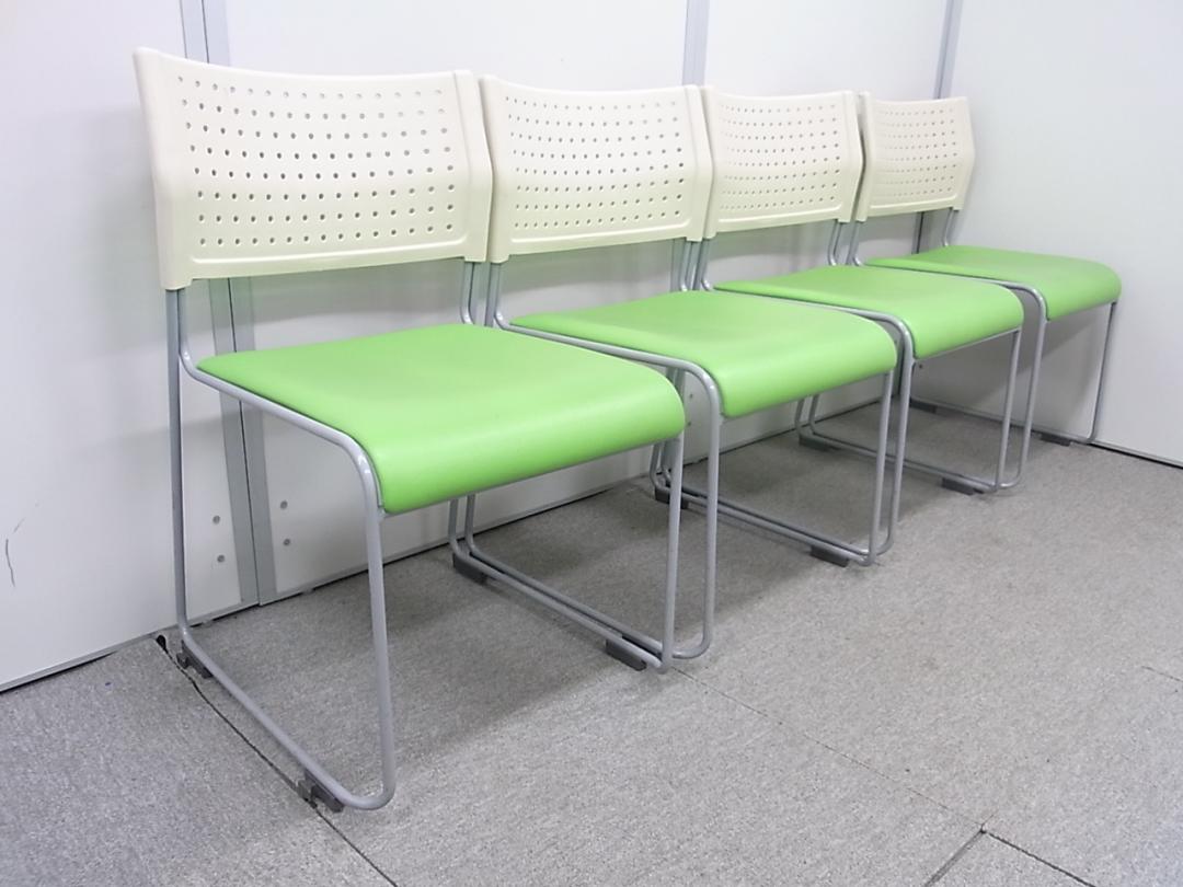 【中古】スタッキングチェア アイリスチトセ製 ミーティングチェア ライトグリーンが鮮やか- 在庫数