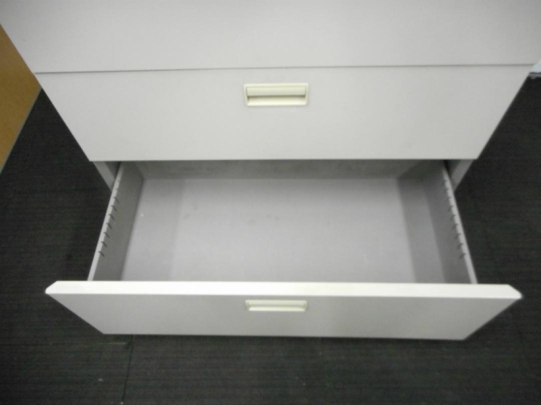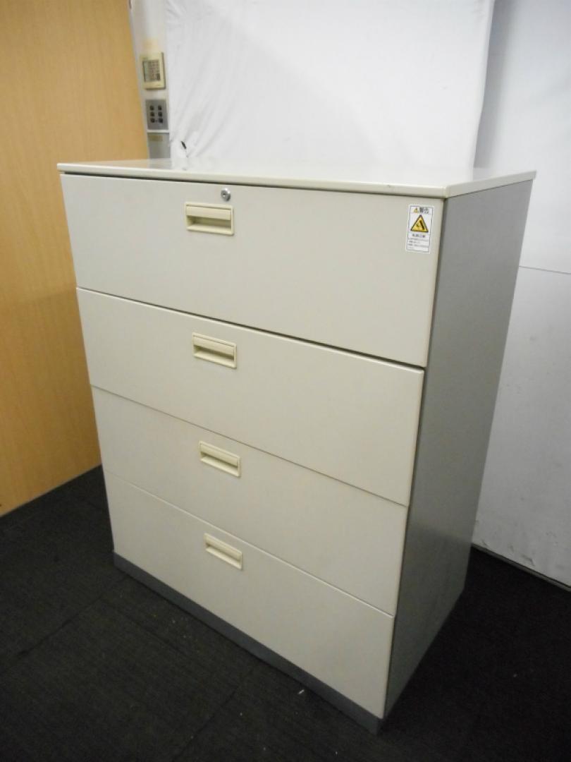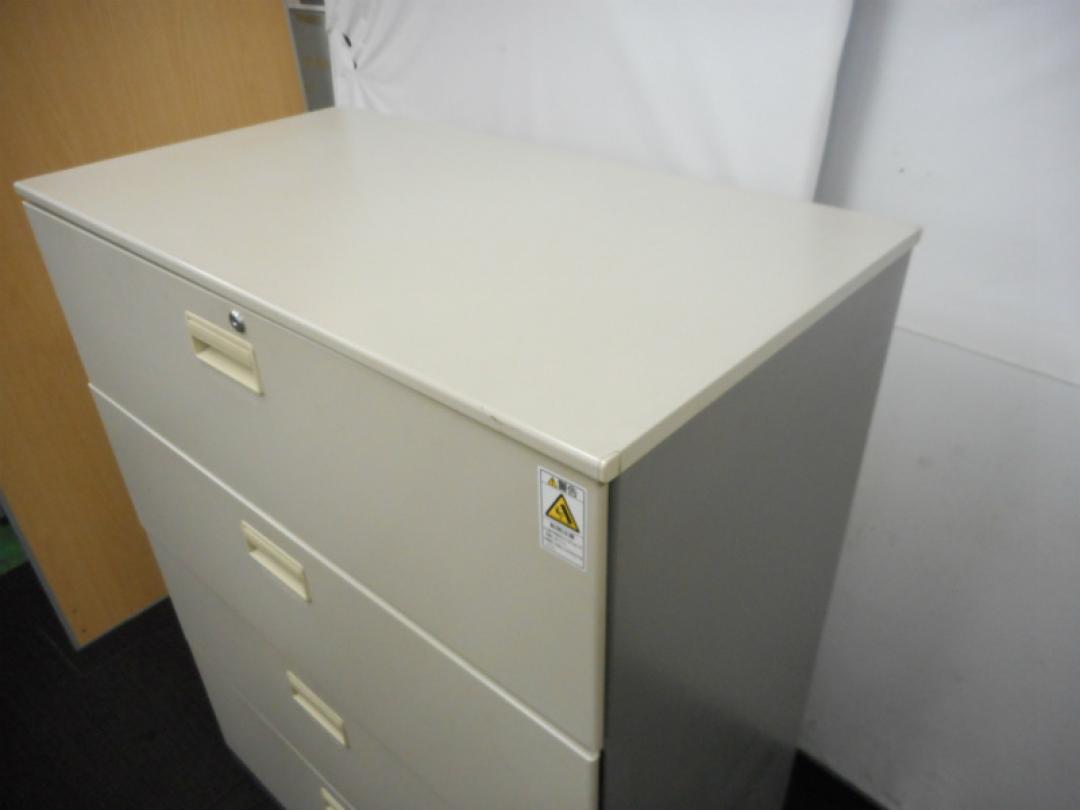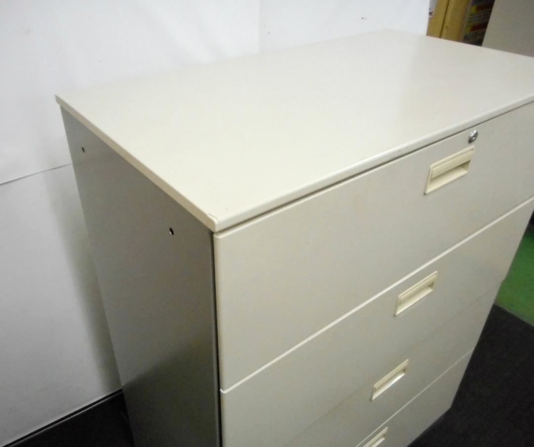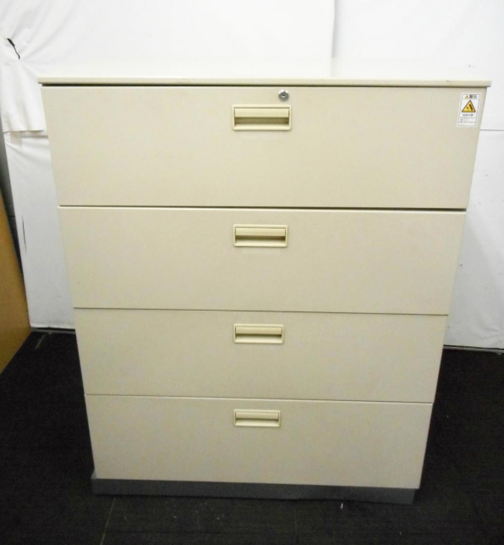 【2台入荷!状態良好】スチール製4段ラテラル 奥行500の深型タイプ 鍵付き ナチュラルグレー【中古オフィス家具】- 川崎店