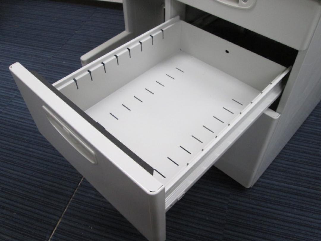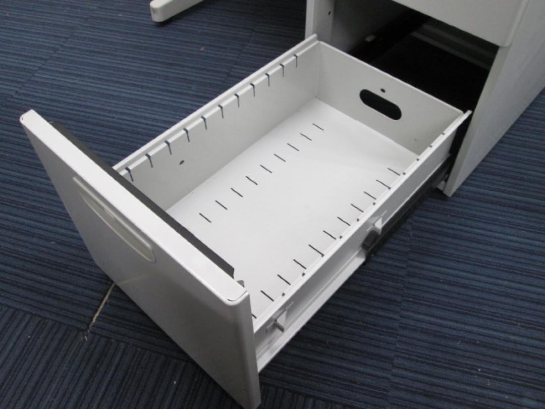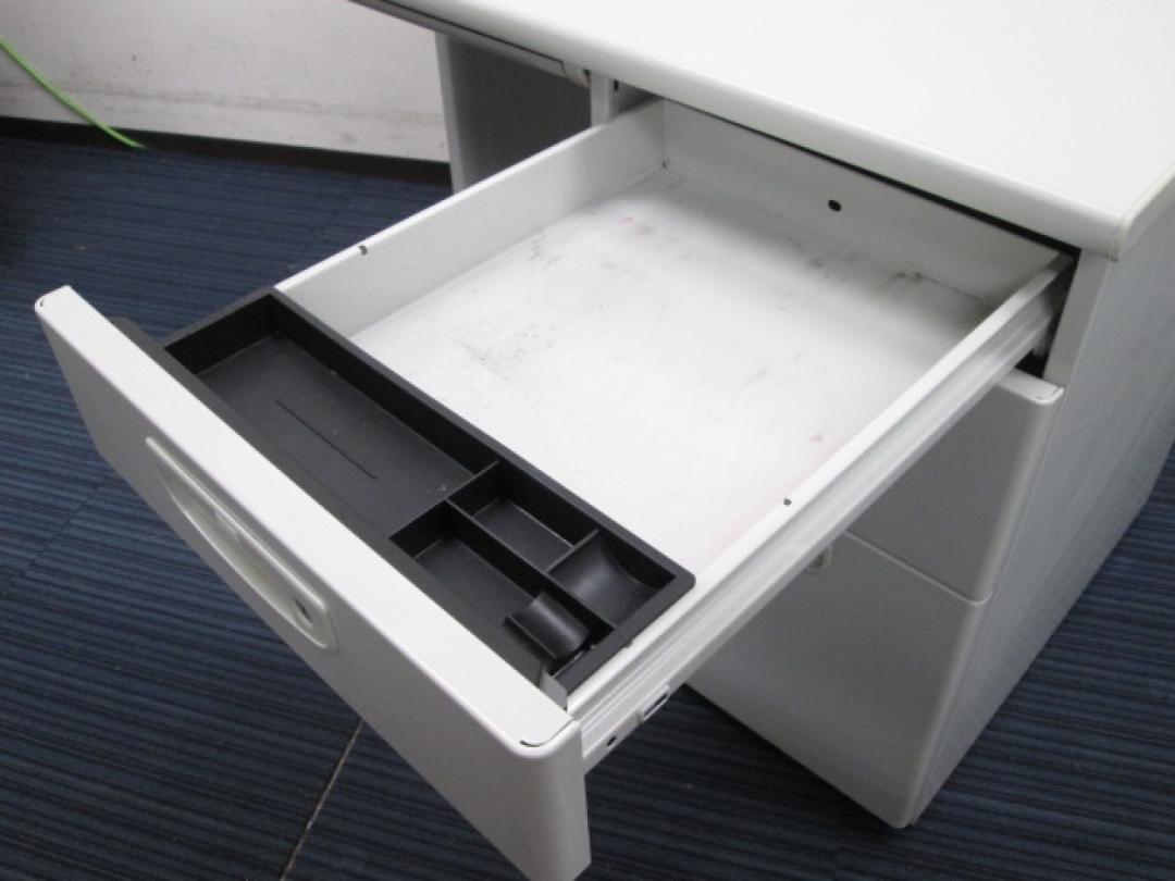 【薄い引き出しにもラッチ機能付き!】国産メーカー ライオン事務機製の片袖机 【事務机】【中古オフィス家具】【中古オフィス用品】- 日本橋店