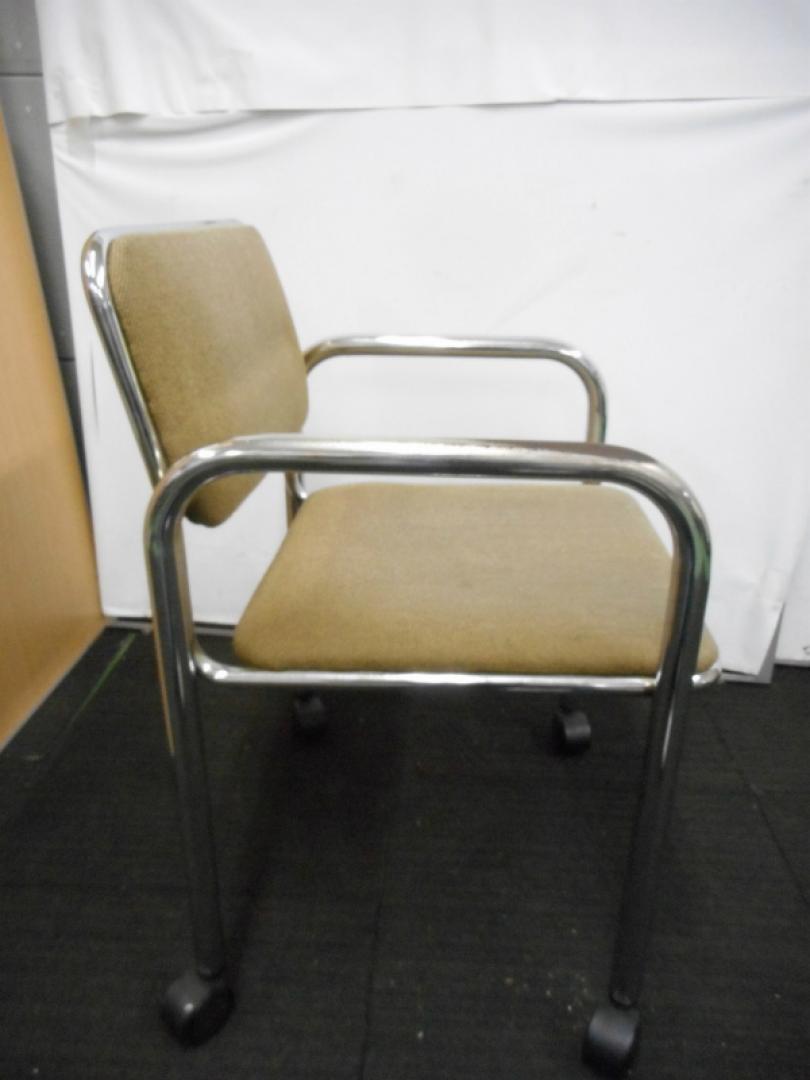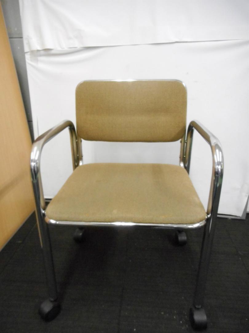【2脚入荷】キャスター付きミーティングチェア タン 会議用チェア ロビーチェア【中古オフィス家具】- 川崎店