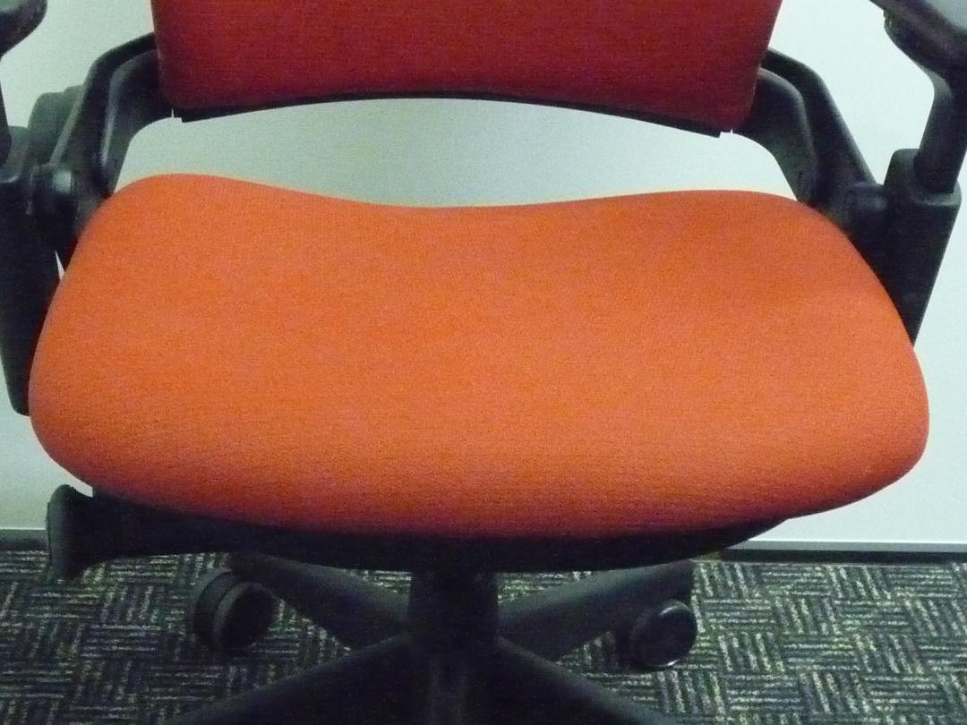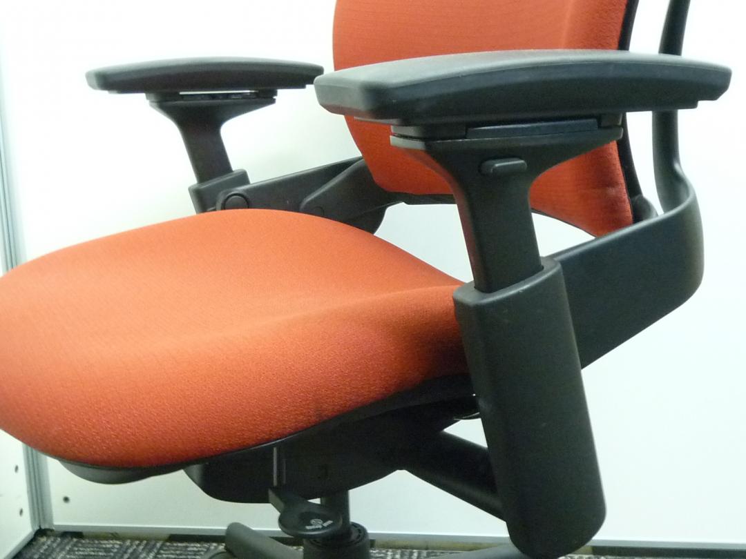 【高級チェア】■人間工学に基づいた抜群の座り心地■赤みの強いタンジェリン色■細かな調整機能が充実【状態良好】サーキュラーバリューCO2削減量の算出について
