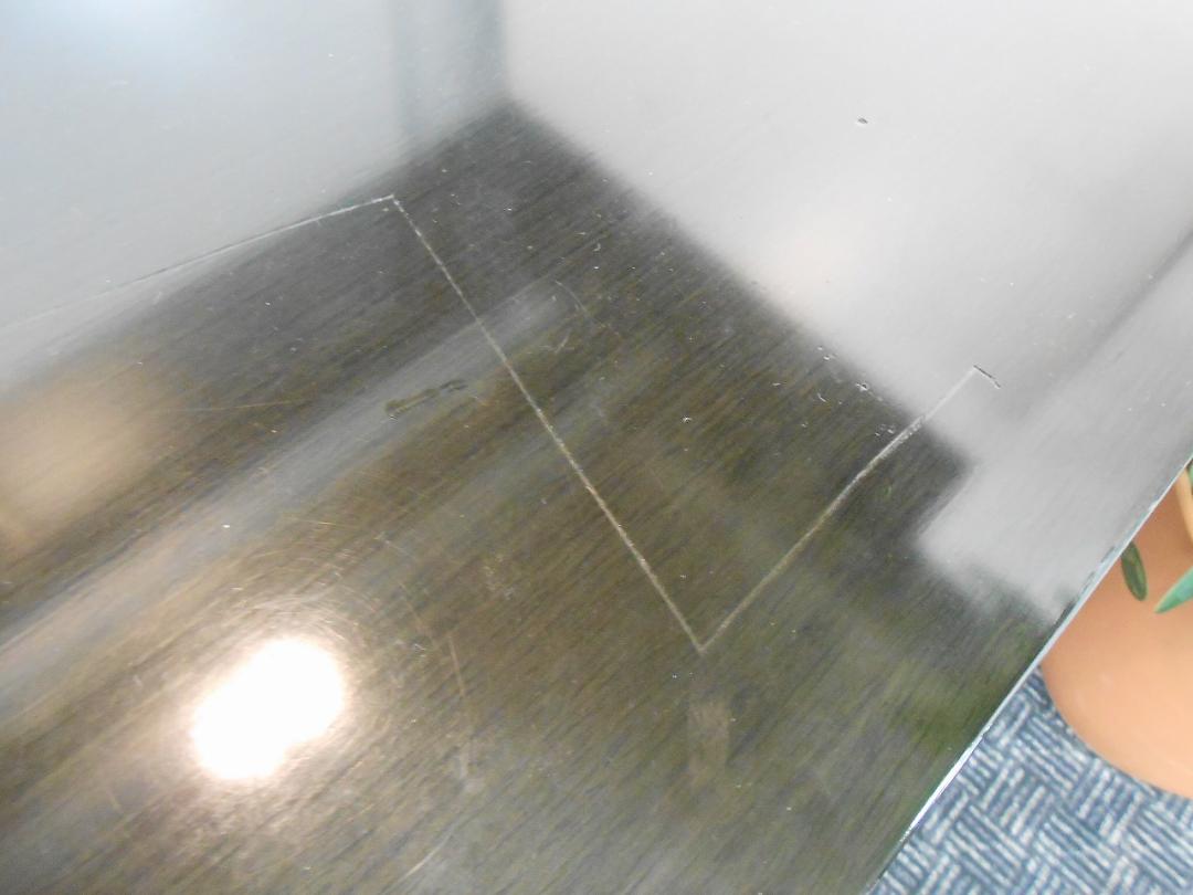 - 目立つ箇所あり傷・凹みが多数、深い傷・凹みが一部ある。(例、天板、幕板、棚板、サイド部分、脚部等にある。)