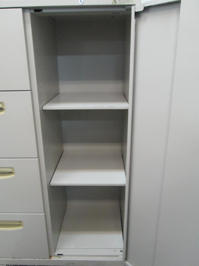 - 一部不具合ありそ引出の開閉不可、施錠不可、棚板無しといったの書庫の本来の効用を果たすための機能以外の一部が使用不可(例、扉、引出の開閉がしづらいなどがある。 )