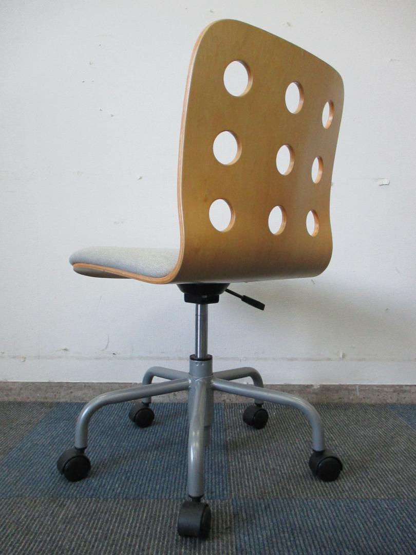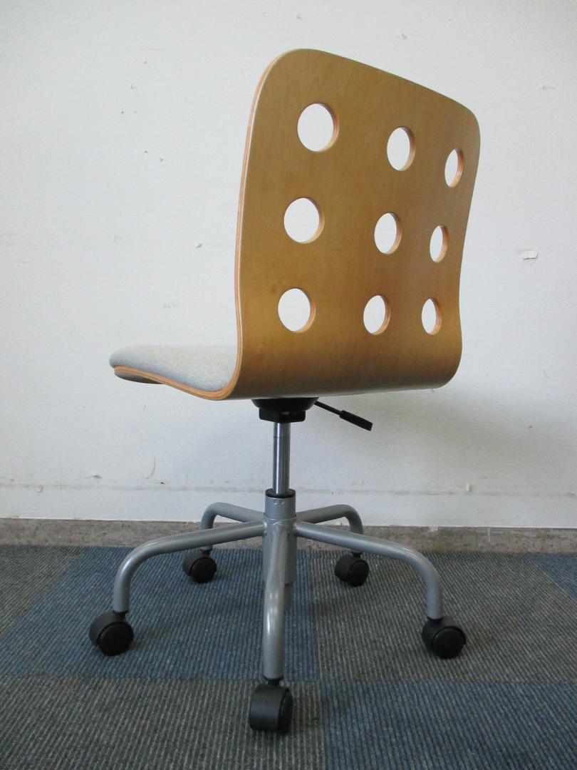 ウッド素材の背もたれと座面は明るいグレー色の配色で