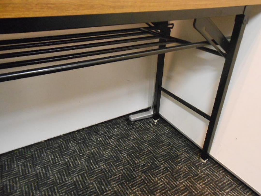 - 一部不具合あり天板歪み、アジャスター無し、キャスター使用不可ようなそのテーブルの本来の効用を果たすための機能以外の一部が使用不可な状態。(例、キャスターロッ ク機能使用不可、棚板無し等がある。)
