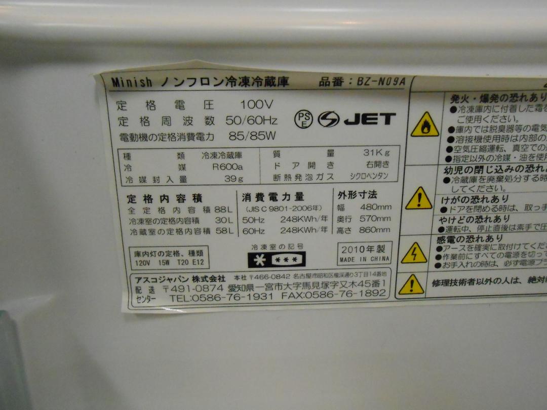 2ドア式ノンフロン冷凍冷蔵庫 ■ 2010年製 ■ 取説付- 在庫数
