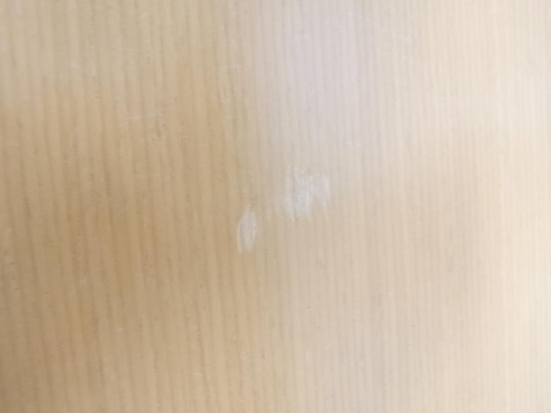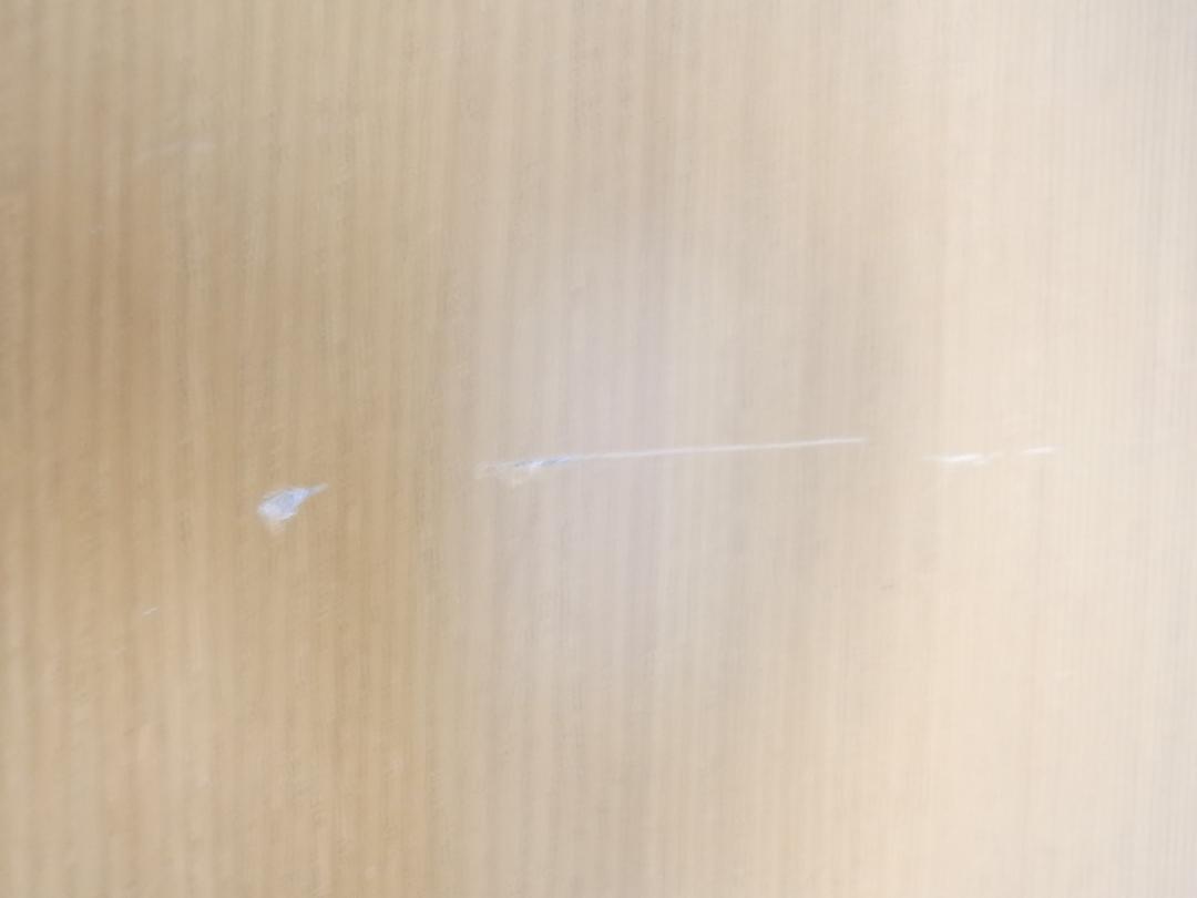 - あり黄ばみ・変色が広い範囲にうっすらある、または濃い黄ばみ・変色が一部ある。(例、天板、幕板、棚板、サイド部分、脚部等にある。)
