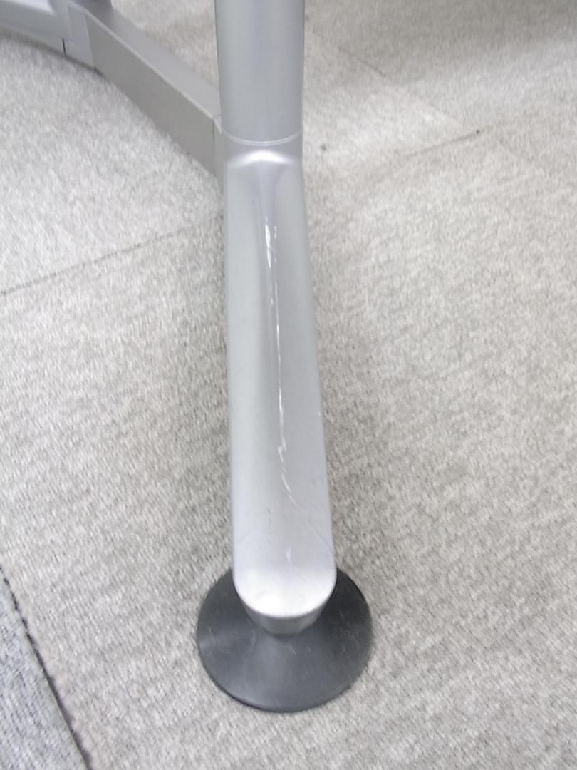 - 一部不具合あり天板歪み、アジャスター無し、キャスター使用不可ようなそのテーブルの本来の効用を果たすための機能以外の一部が使用不可な状態。(例、キャスターロッ ク機能使用不可、棚板無し等がある。)