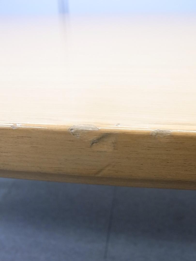 - 壊れている天板歪み、アジャスター無し、キャスター使用不可のようにそのテーブルの本来の効用を果たすための機能に不具合がある。