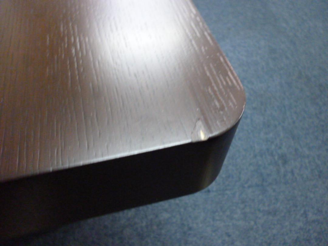 - あり黄ばみ・変色が広い範囲にうっすらある、または濃い黄ばみ・変色が一部ある。(例:三人用ソファ、二人用ソファ、一人用ソファの場合、背もたれ、肘かけ、座面等、 センターテーブルの場合、天板、脚にある。)