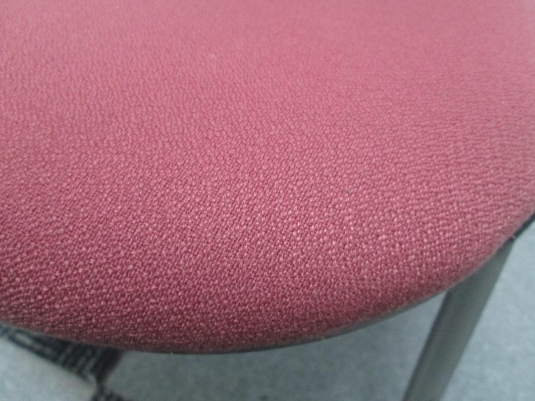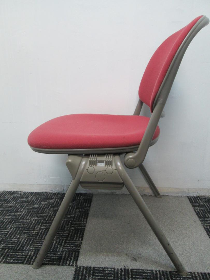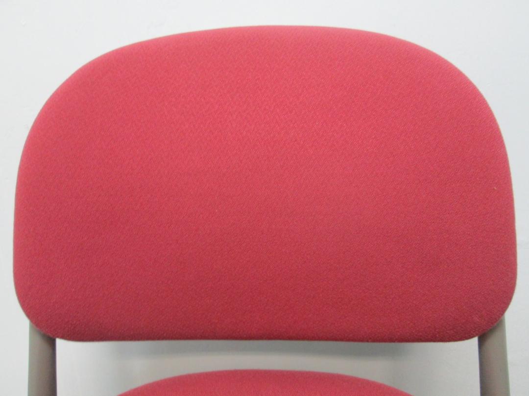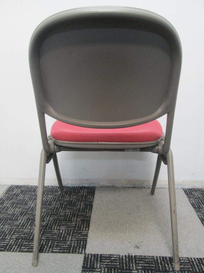 鮮やかなピンクのスタッキングチェアです。国内メーカーのオカムラ製ですので、品質も良いです。