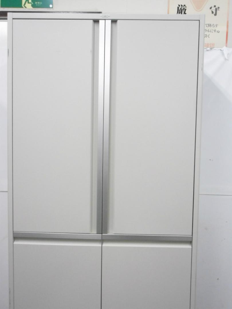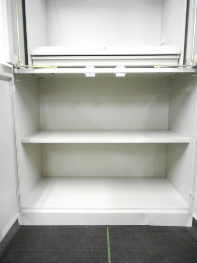 【状態良好】LION製 スチール キッチンキャビネット 上段マジック扉 下段両開き 【中古オフィス家具】- 川崎店