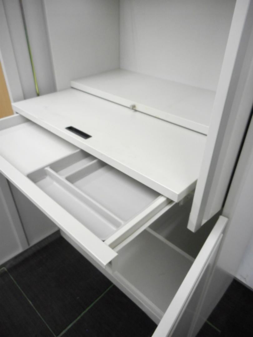 - 一部不具合ありそ引出の開閉不可、施錠不可、棚板無しといったの書庫の本来の効用を果たすための機能以外の一部が使用不可(例、扉、引出の開閉がしづらいなどがある。 )
