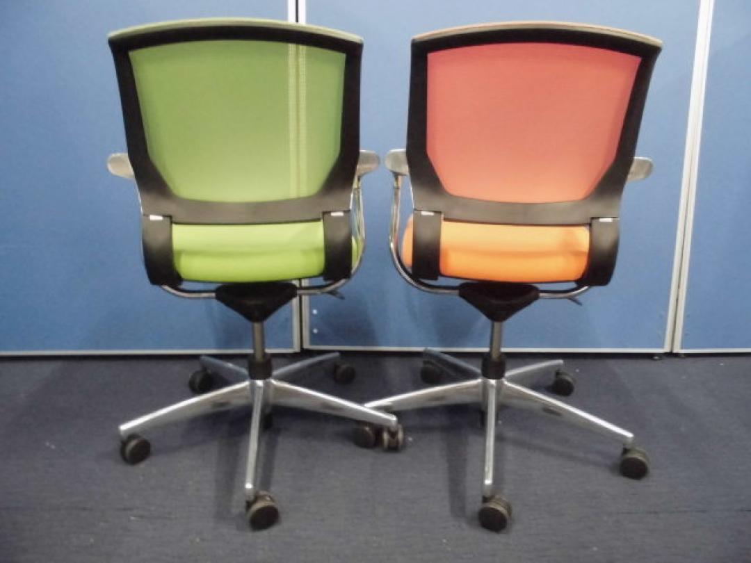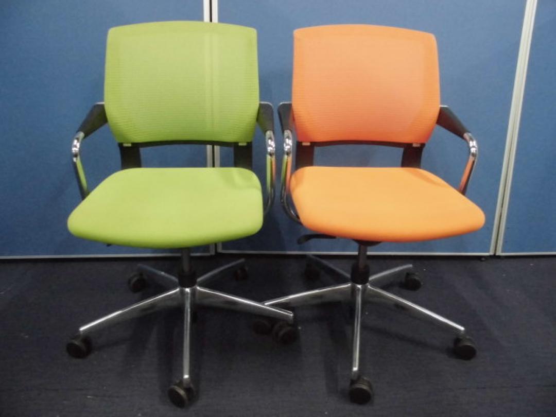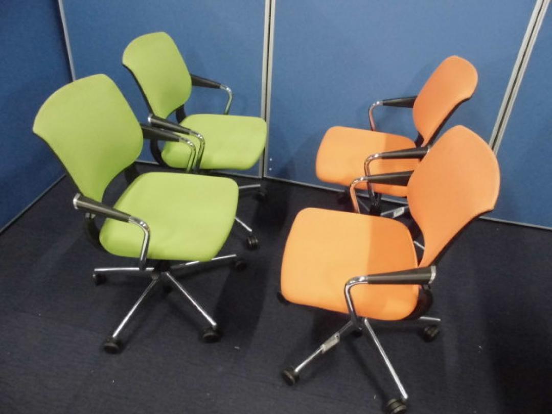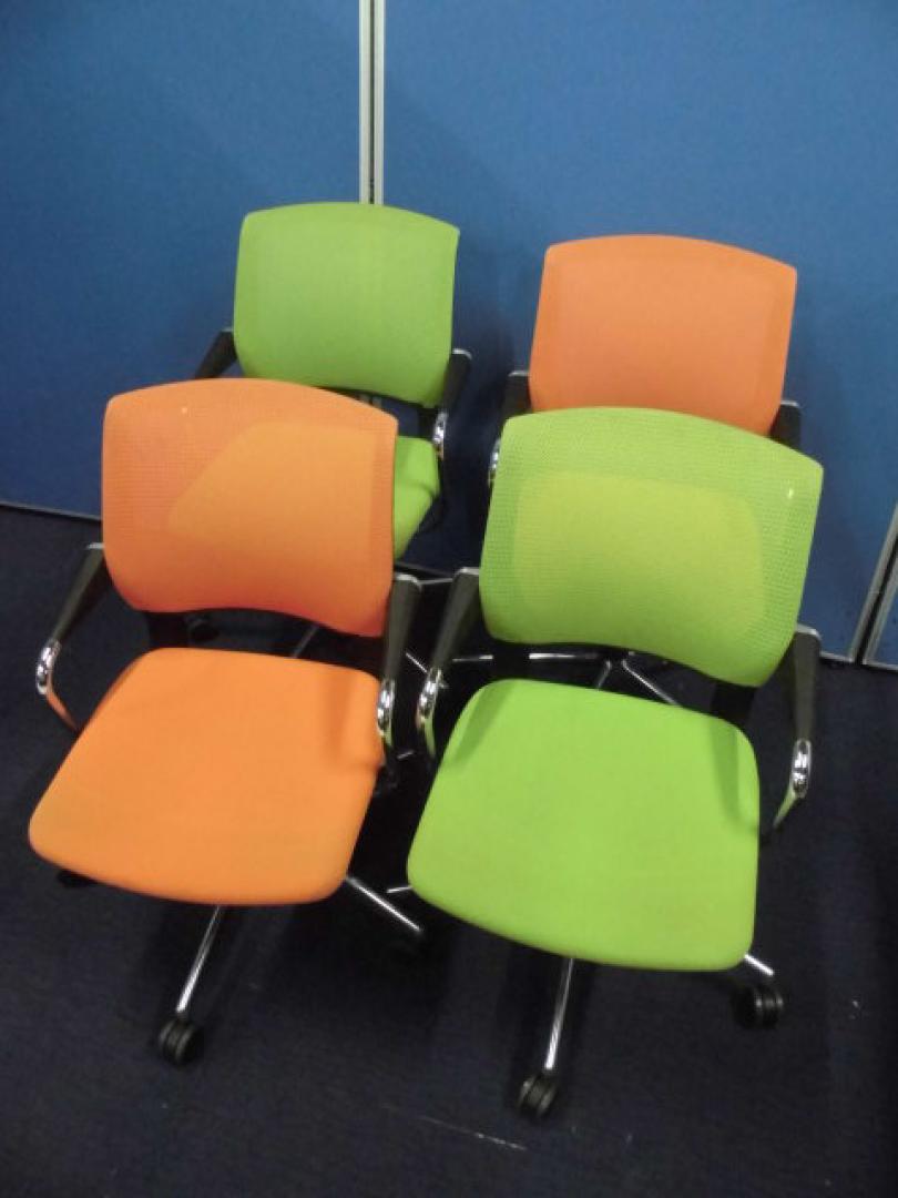 【オシャレなミーティングチェア4脚セット】コクヨ|サテリテ|キミドリ+オレンジ【メッシュチェア】【セット商品】- 立川・八王子店